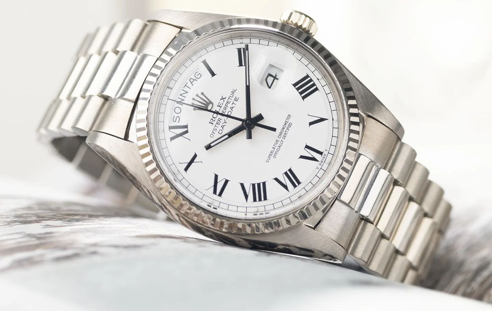 Sind 18 Karat Gold und reines Gold dasselbe? Jein. Die reinste Form ist 24 Karat Gold. Es besteht aus nichts anderem als aus reinem Gold. Das Problem: Reines Gold ist für Uhren schlicht zu weich. Deshalb ist 18-karätiges Gold der höchste Feingehalt bei Uhren. 18 Karat Gold besteht zu 75 % aus Gold und zu 25 % aus anderen Metallen. Gold wird also mit anderen Metallen legiert, weil es in Reinform zu weich und außerdem sehr kostspielig wäre. 18-karätiges Gold wird auch als 750er Gold bezeichnet. Man erkennt es am Stempel auf dem Gehäuseboden oder an anderen Teilen der Uhr. 18 Karat ist der Standard bei den neueren Rolex-Golduhren.