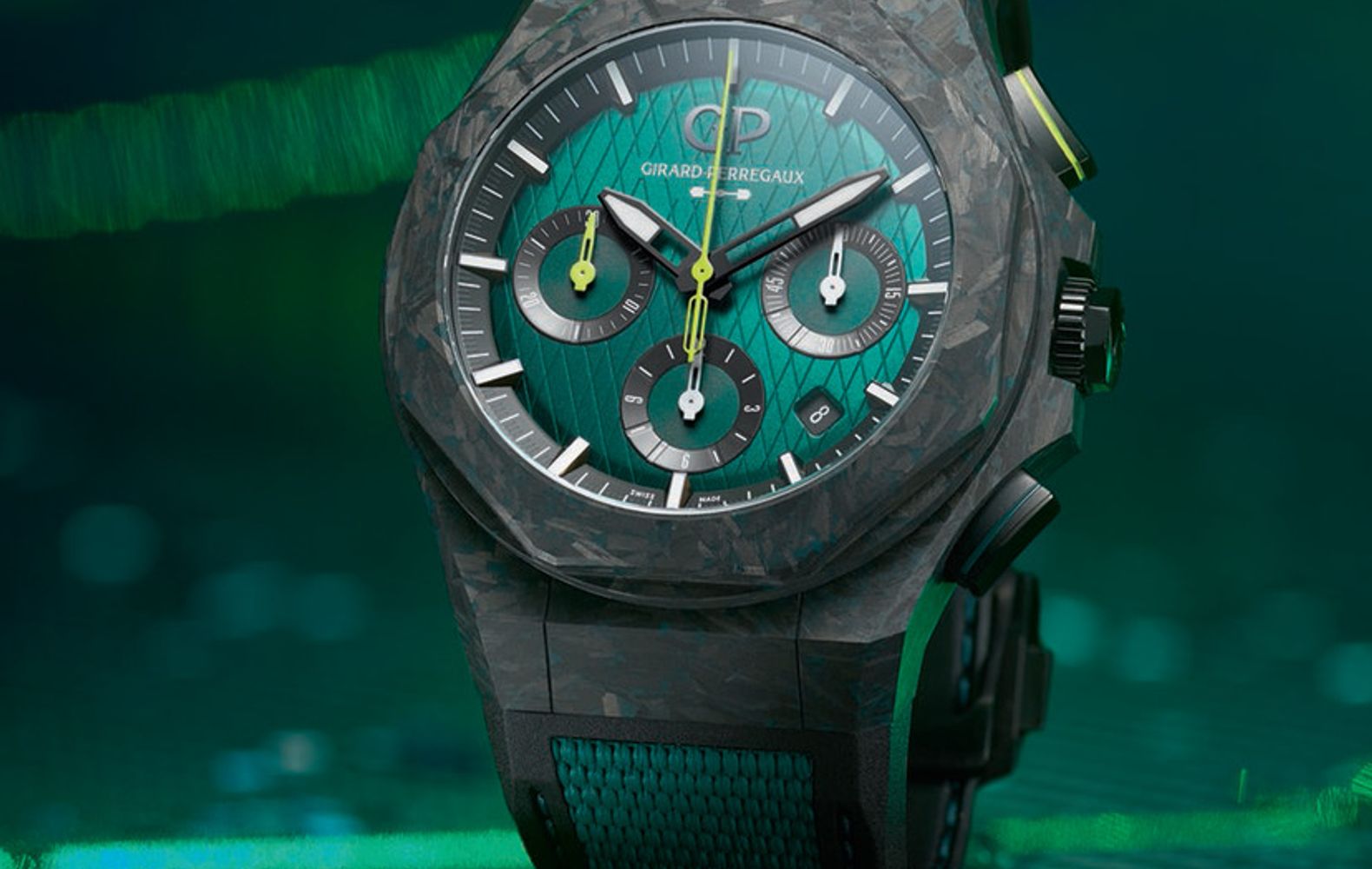 Das Formel 1 Team von Aston Martin hat seinen Sitz in der Nähe der Silverstone Rennstrecke, einer legendären Strecke, auf der jedes Jahr Spektakuläres passiert. Wenden wir uns der Zusammenarbeit von Girard-Perregaux und Aston Martin zu. Habt ihr eigentlich bemerkt, dass GP nicht nur für Grand Prix steht, sondern auch die Abkürzung von Girard-Perregaux ist? Das ist für die Zusammenarbeit mit Aston Martin sicherlich nicht ausschlaggebend, aber es ist ein nettes Detail. Aston Martin ist für seine edlen Boliden mit einer schönen Lackierung bekannt, die auch 2024 in der Startaufstellung stehen werden. Die gleichen Farben werden auch für die Limited-Edition-Modelle von Girard-Perregaux verwendet.