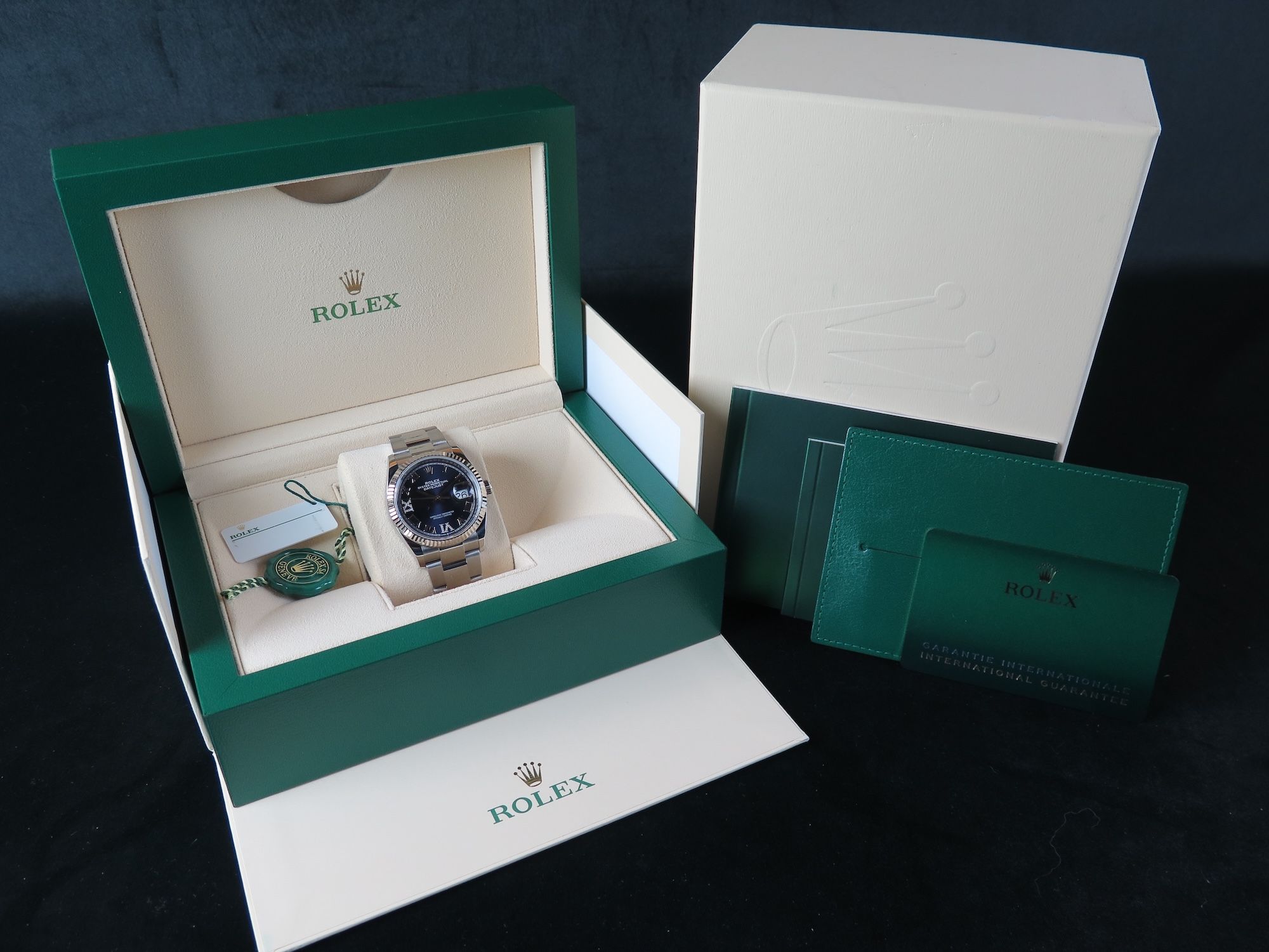 Dial colour is aubergine with diamonds on 6 and 9.Originally sold by Rolex 09/2020.