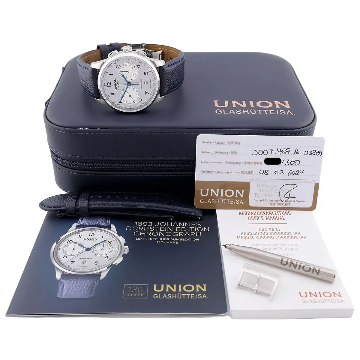 UNION GLASHÜTTE | 1893 Johannes Dürrstein Edition Chronograph | Ref. D007.459.16.032.09 - Full Set - Limited Edition