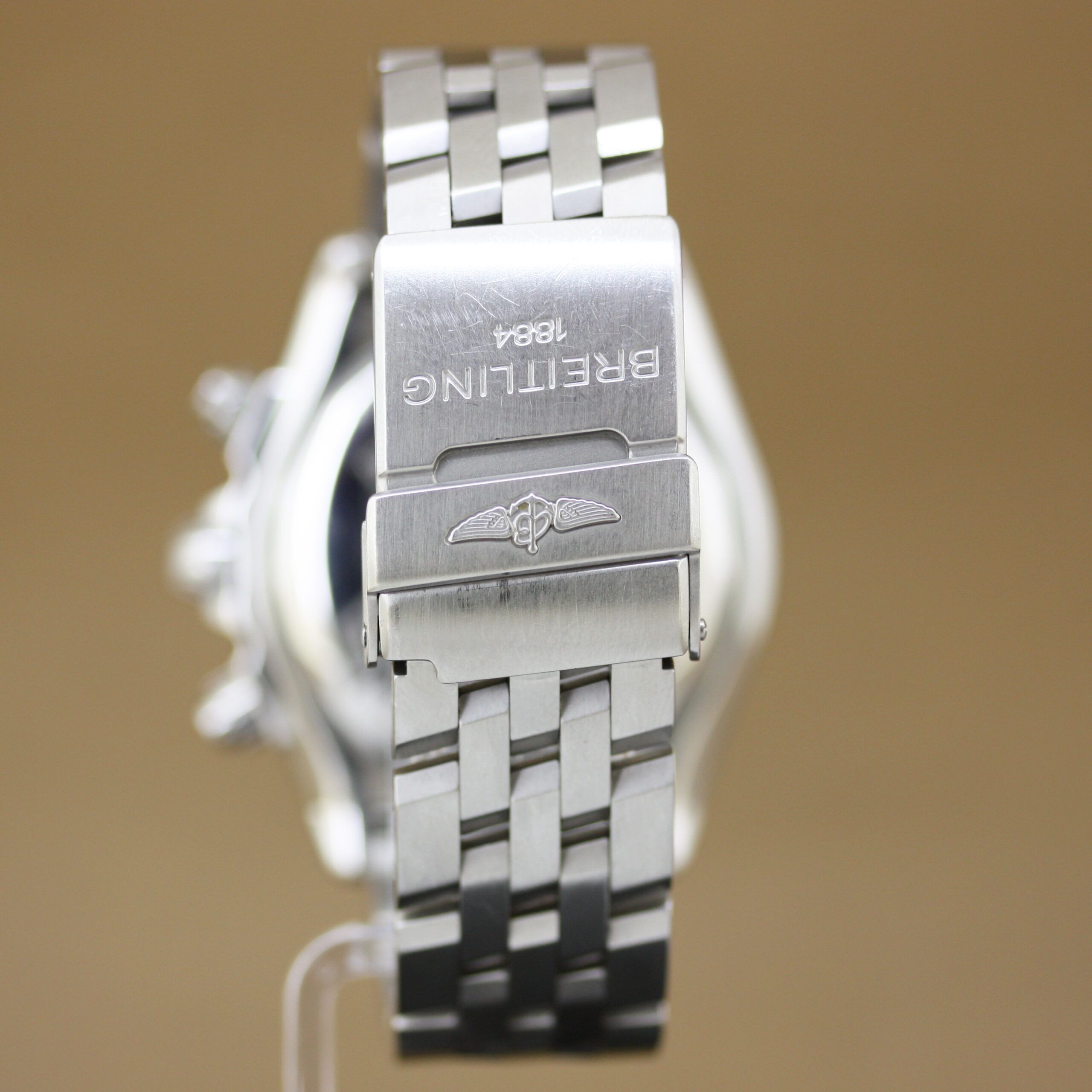 Die Blackbird A44359 von Breitling befindet sich in einem sehr guten Zustand und ist mit einem Stalenkasten ausgestattet. Die Uhr verfügt über ein schwarzes Zifferblatt. Dieses Modell verfügt über ein automatisches Uhrwerk mit Datums- und Chronographenfunktion. Die Blackbird verfügt über ein stählernes Band und eine Uhr mit Papieren.(Full Set , Horloge heeft recent service gehad)