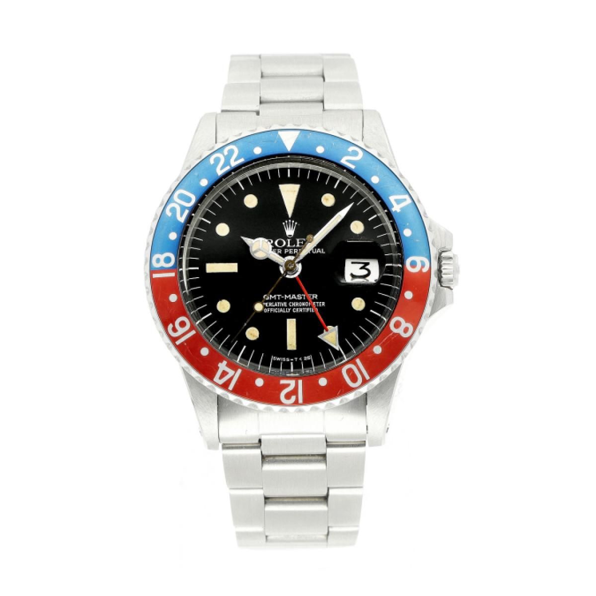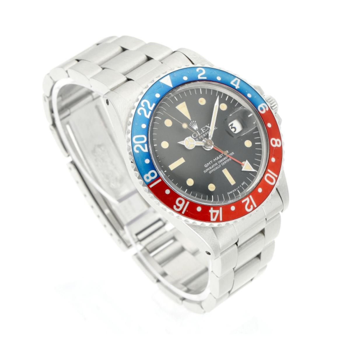 Rolex GMT-Master aus dem Jahr 1976 mit einem 40-mm-Edelstahlgehäuse und Faltschließe. Die Rolex Herrenuhr ist in sehr gutem Zustand.