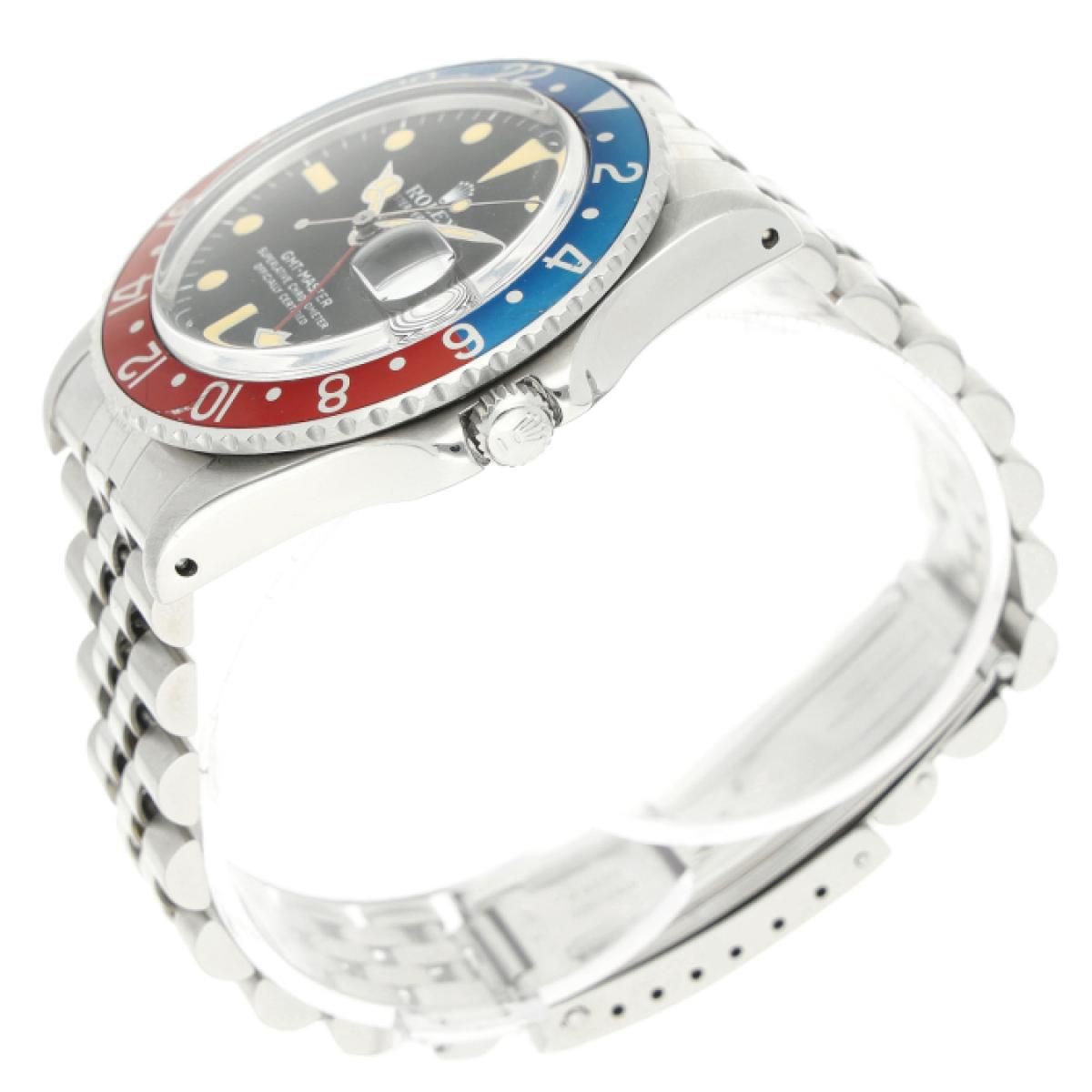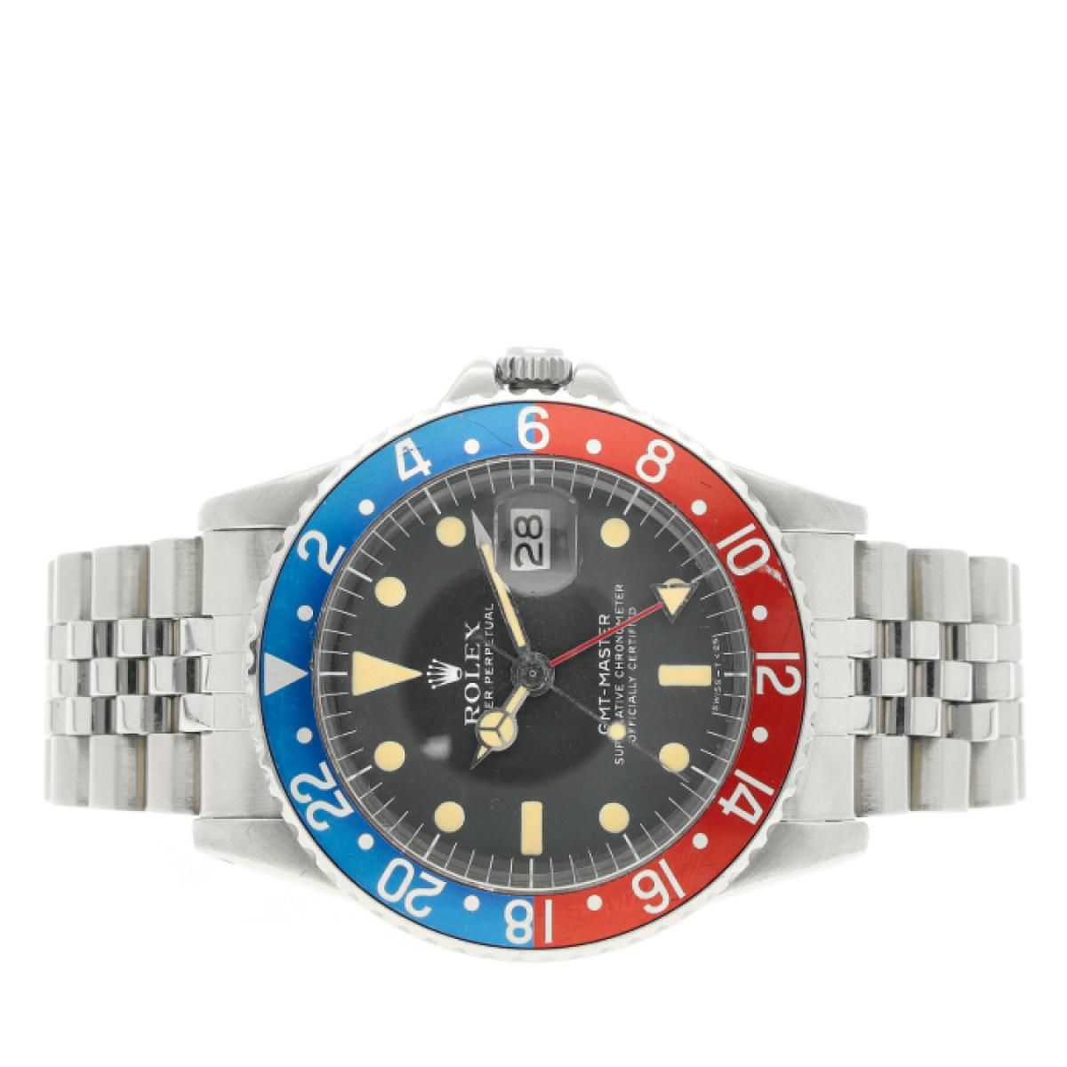 Rolex GMT-Master from 1977 with a 40mm stainless steel case and folding clasp. The men's Rolex watch is in good condition.Good conditionRef. 1675Vintage40mmDate + GMTAutomaticChronometerBlack Dial