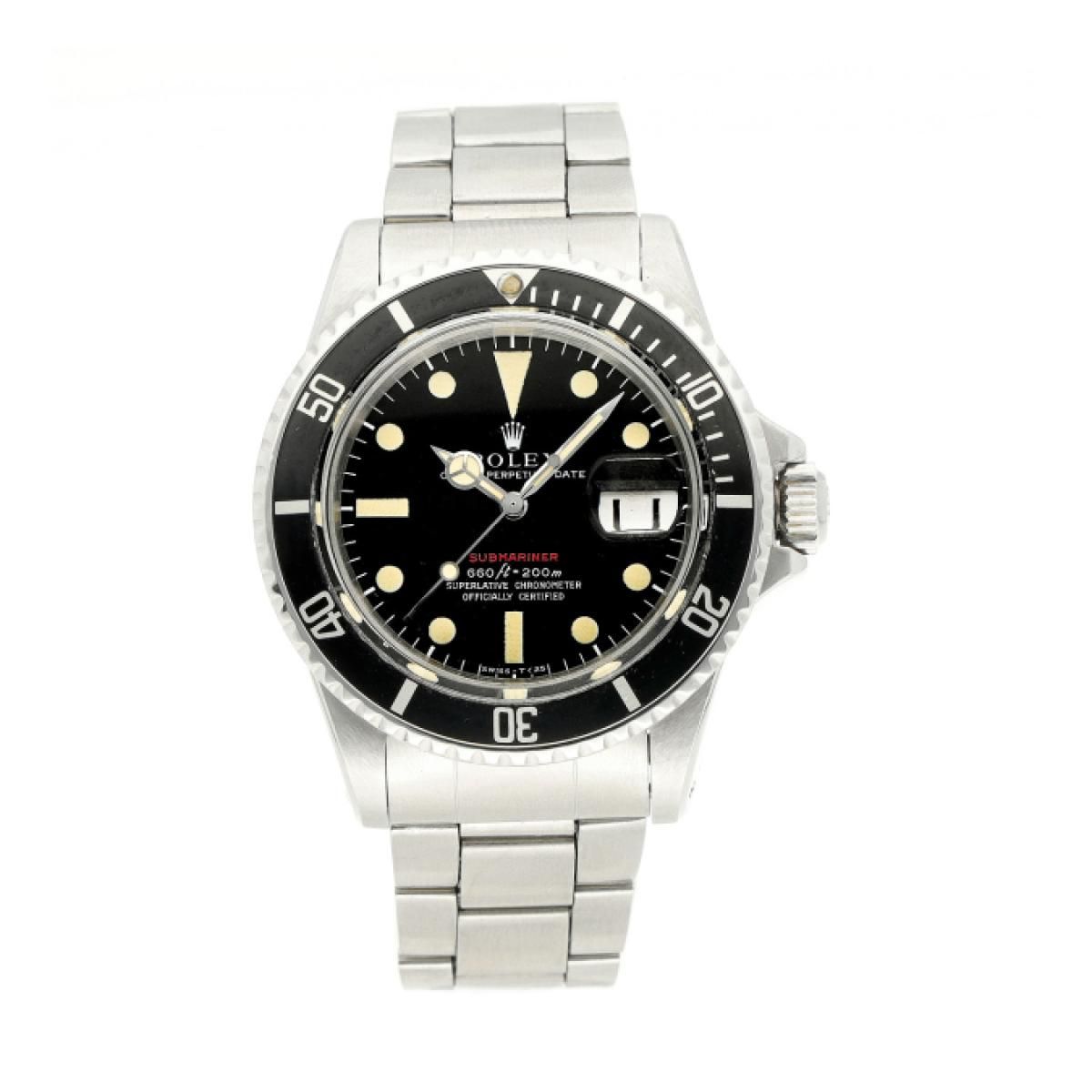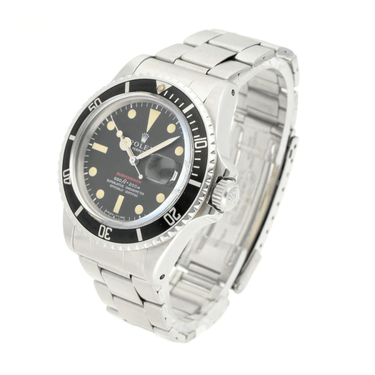 Rolex Submariner Date aus dem Jahr 1972 mit einem 40-mm-Edelstahlgehäuse und Faltschließe. Die Rolex Herrenuhr ist in sehr gutem Zustand.