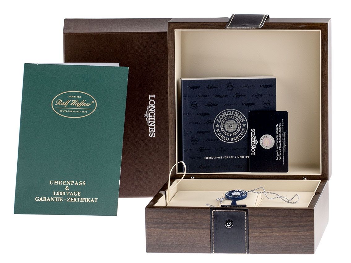 Gehäuse Edelstahl poliert und satiniert, Gehäusedurchmesser ohne Krone 42mm, Gehäusehöhe 13,8mm. Lünette schwarz mit gravierter 60-Minuten-Skala. Armband Edelstahl poliert, Sicherheitsfaltschließe Edelstahl mit Hersteller-Logo. Zifferblatt schwarz matt mit arabischen Ziffern, Indexen, und Edelstahl Zeigern. Uhrwerk Automatik, Kaliber Longines L888. Anzeige von Stunde, Minute und Sekunde über Zeiger aus der Mitte mit Sekundenstopp zur sekundengenauen Einstellung der Uhrzeit. Saphirglas kratzfest. Krone verschraubbar mit Hersteller-Logo. Boden Edelstahl verschraubt und graviert. Gewicht der Uhr inklusive Armband 171g, Länge des Armbandes inklusive Gehäuse 215mm. Referenznummer: L2.822.4.56.6, ID: ST116033481222H-2460, Artikelnummer: 10000067818. Original Longines Box mit Umkarton und Garantie Papiere, Full Set. Ungetragen. Lieferzeit sofort.