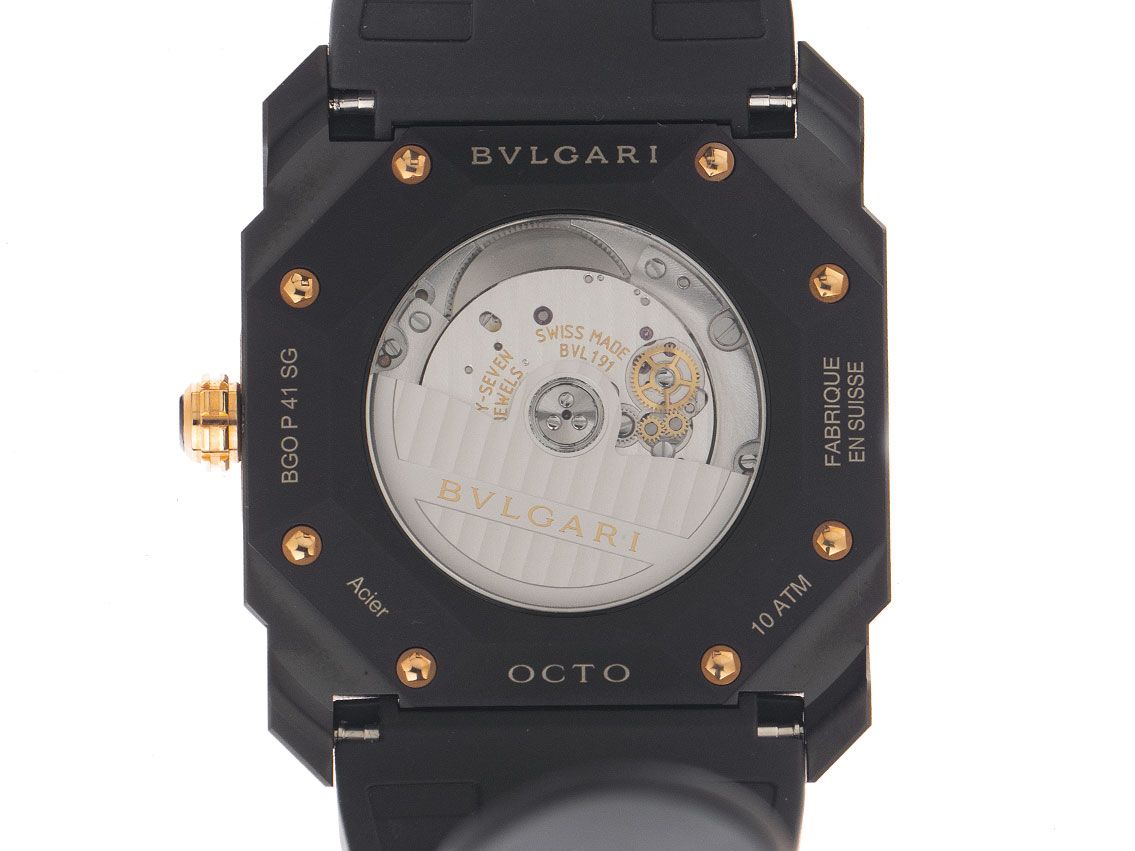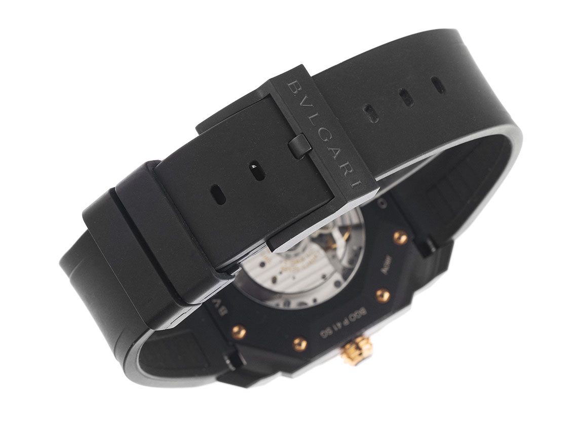 Gehäuse Edelstahl DLC schwarz beschichtet satiniert, achteckig, Gehäusedurchmesser ohne Krone 41mm, Gehäusehöhe 10,8mm. Lünette Edelstahl DLC schwarz beschichtet mit 18kt roségoldenem Oktagon. Bulgari Armband Kautschuk schwarz, Stiftschließe Edelstahl DLC schwarz beschichtet mit Hersteller-Logo. Zifferblatt schwarz mit aufgesetzten roségoldenen Indexen, arabischen Ziffern 6 und 12 und roségoldenen Zeigern. Uhrwerk Automatik, Kaliber BVL 191 mit 27 Edelsteinen, Gangreserve ca. 42 Stunden. Anzeige von Stunde, Minute und Sekunde über Zeiger aus der Mitte mit Sekundenstopp zur sekundengenauen Einstellung der Uhrzeit, Datumsanzeige mit Schnellverstellung bei 3 Uhr. Saphirglas kratzfest. Krone 18kt Roségold verschraubbar mit Keramik Intarsie. Boden DLC schwarz beschichtet 8-fach verschraubt und graviert mit Saphirglas Sichtfenster. Gewicht der Uhr inklusive Armband 105g. Wasserdicht bis 10 ATM. Referenznummer: 103085, ID: ST1160129280424H-9700 Artikelnummer: 10000074384. Original Bulgari Box und Garantie Papiere von 03/2024, Full Set. Ungetragen. Lieferzeit sofort.