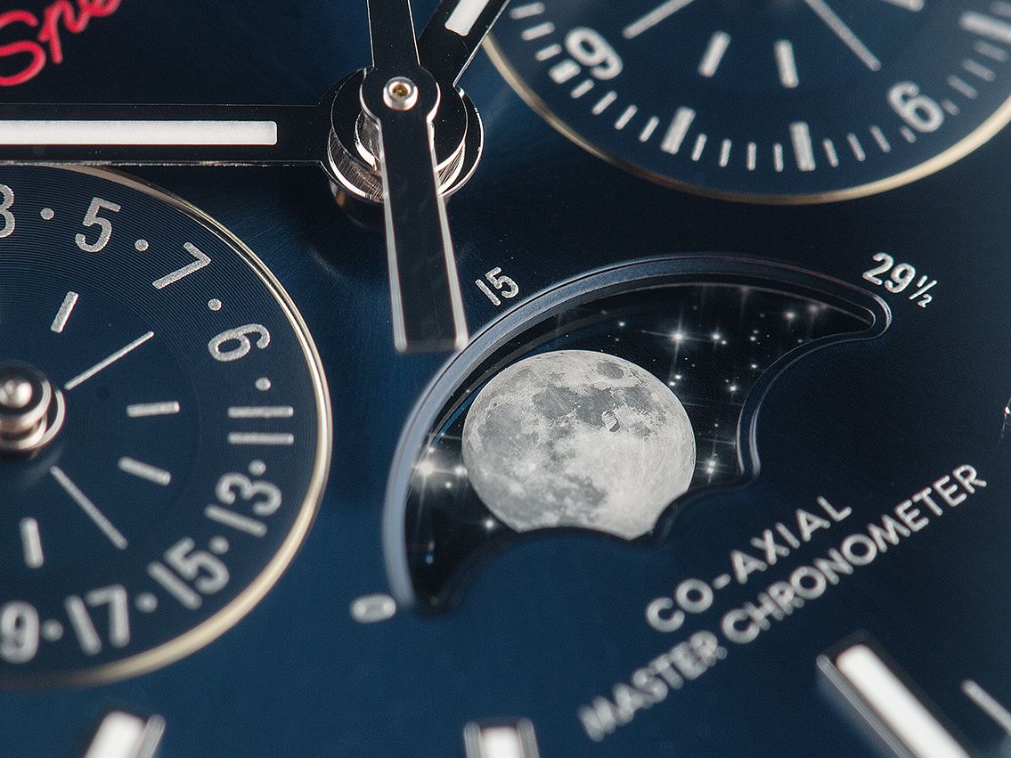 Gehäuse Edelstahl poliert und satiniert, Gehäusedurchmesser ohne Krone 44,25mm, Gehäusehöhe 7,6mm. Lünette Edelstahl mit blauem Keramik Inlay und Tachymeterskala. Armband Leder blau mit heller Ziernaht, Anstoßbreite 21mm, Sicherheitsfaltschließe Edelstahl mit Hersteller-Logo. Zifferblatt blau mit aufgesetzten Edelstahl Leuchtindexen und Edelstahl Leuchtzeigern. Uhrwerk Automatik, Chronograph, Chronometer mit Zeugnis, Omega Manufakturkaliber 9904 mit 54 Edelsteinen, Säulenrad und Co-Axial Hemmung, Gangreserve ca. 60 Stunden. Anzeige von Stunde und Minute über Zeiger aus der Mitte, kleine Sekunde mit Sekundenstopp zur sekundengenauen Einstellung der Uhrzeit bei 9 Uhr, Datumsanzeige mit Schnellverstellung, ablesbar über Zeiger bei 9 Uhr, Mondphasenanzeige bei 6 Uhr mit Fußabdruck eines Astronauten. Saphirglas kratzfest und beidseitig entspiegelt. Krone mit Hersteller-Logo. Boden Edelstahl verschraubt und graviert mit Saphirglas Sichtfenster. Gewicht der Uhr inklusive Armband 120g. Wasserdicht bis 10 ATM. Referenznummer: 304.33.44.52.03.001, ID: ST1160171060824H-12200, Artikelnummer: 10000076138. Original Omega Box mit Umkarton und Garantie Papiere von August 2024 sowie Beschreibung, Full Set. Ungetragen. Lieferzeit sofort.