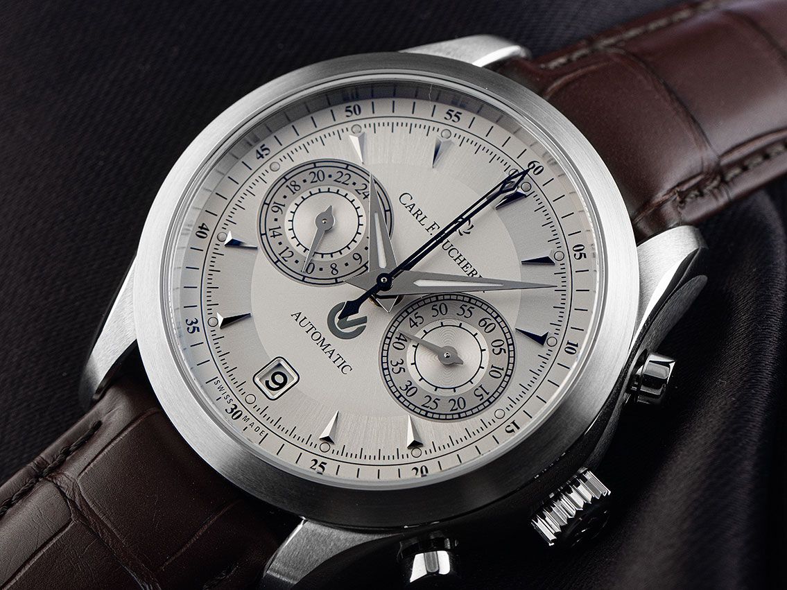 Carl F. Bucherer Manero Stahl Automatik Chronograph Armband Krokoleder Faltschließe