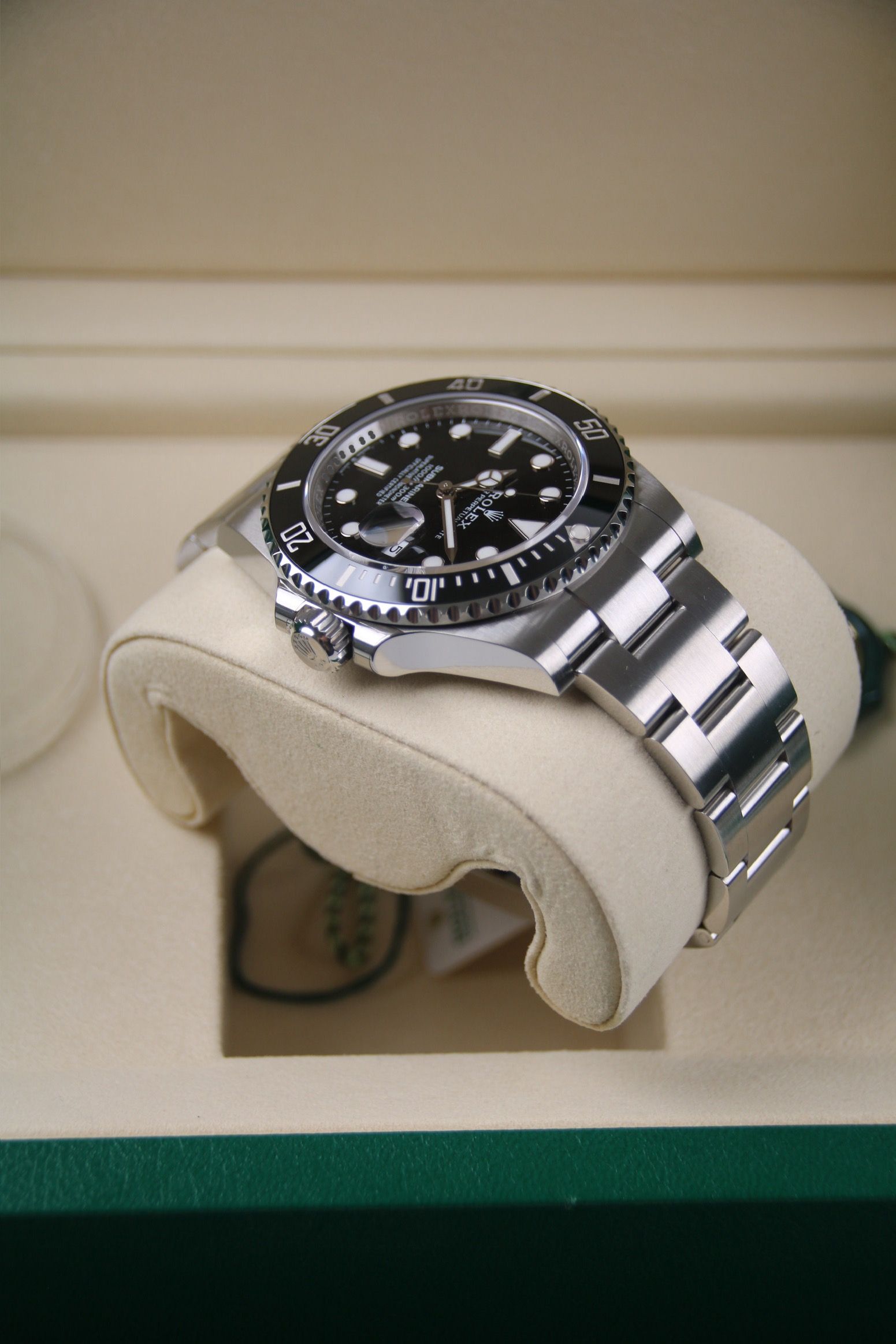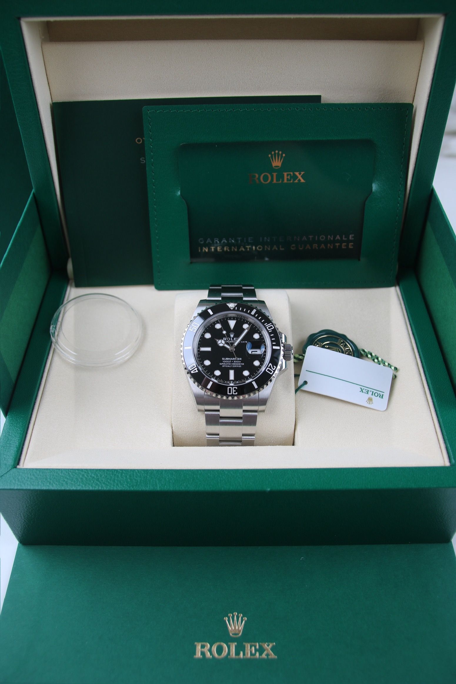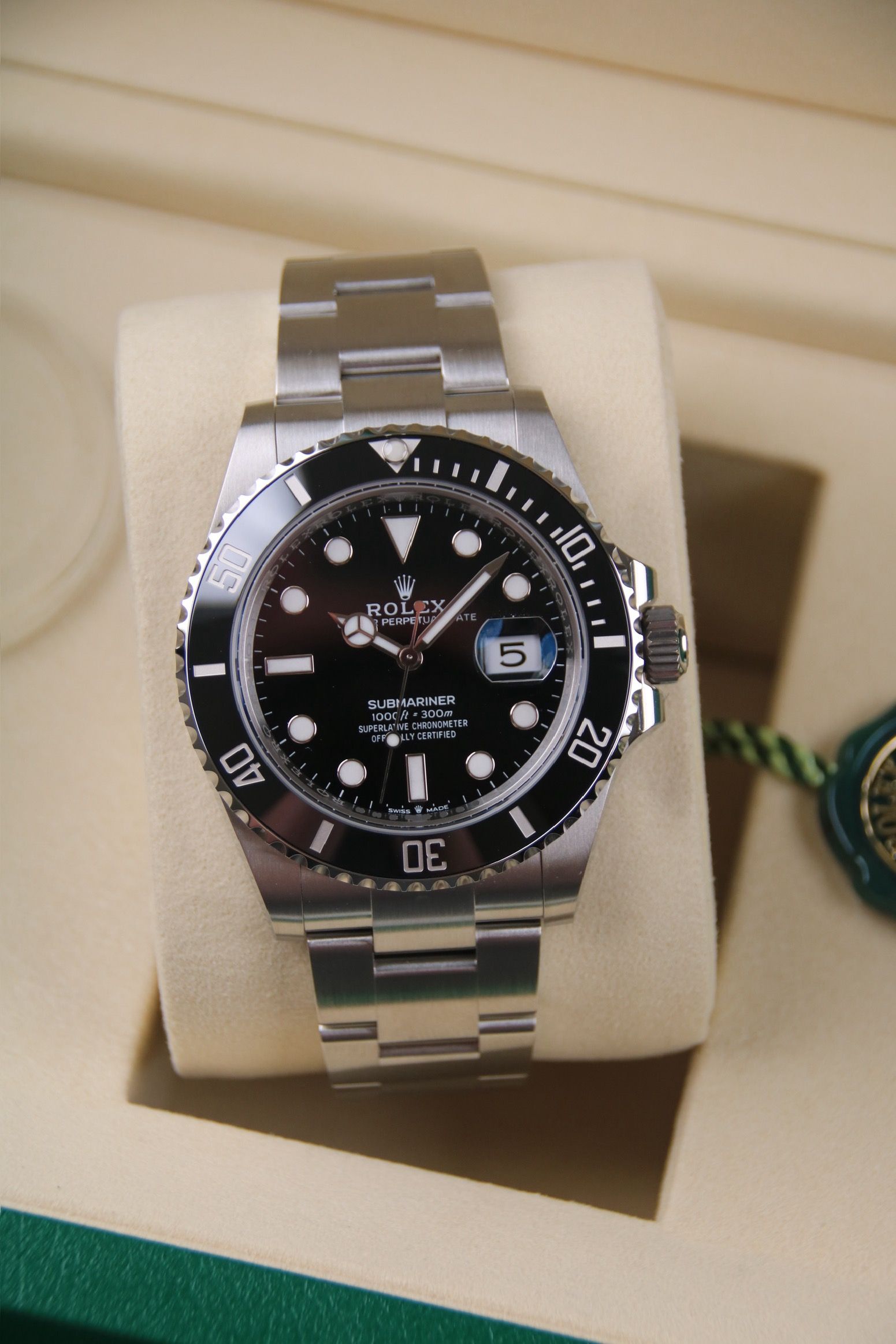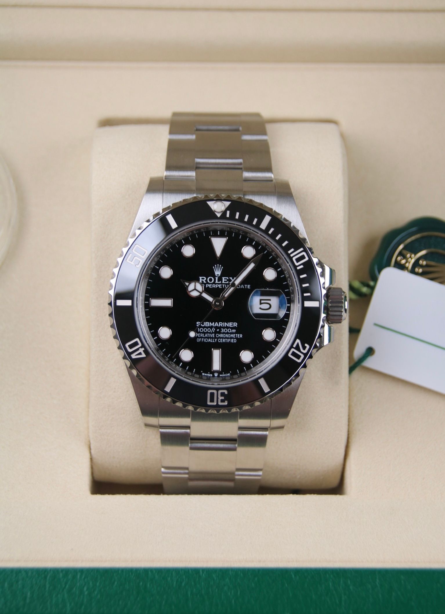 Zum Verkauf steht eine brandneue und ungetragene Submariner Date Referenz 126610LN. Gekauft von einem autorisierten Händler im Mai 2025, also Rolex Garantie bis 2030. Sie wird als komplettes Set mit Box, Papieren etc. geliefert.