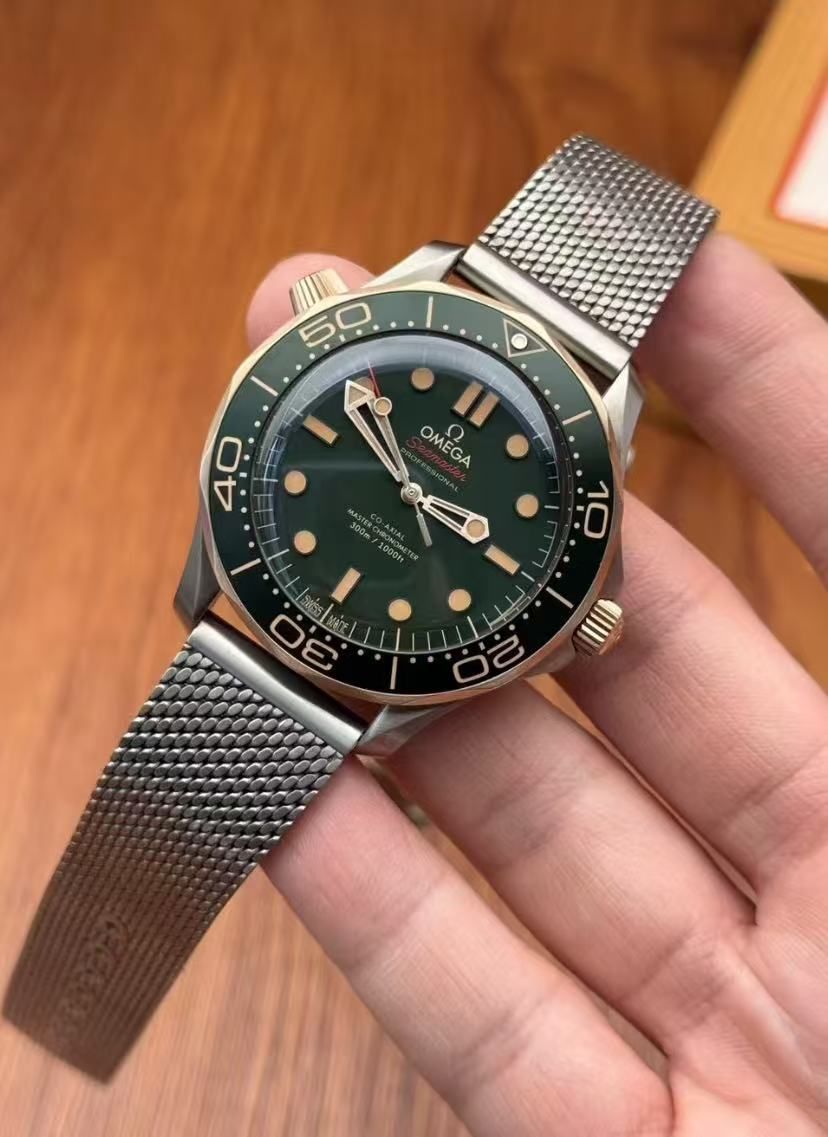 Omega 210.90.42.20.10.001 Seamaster Diver 300M Master Co-Axial 42 Titanium - Bronze Gold / Green / Bracelet
