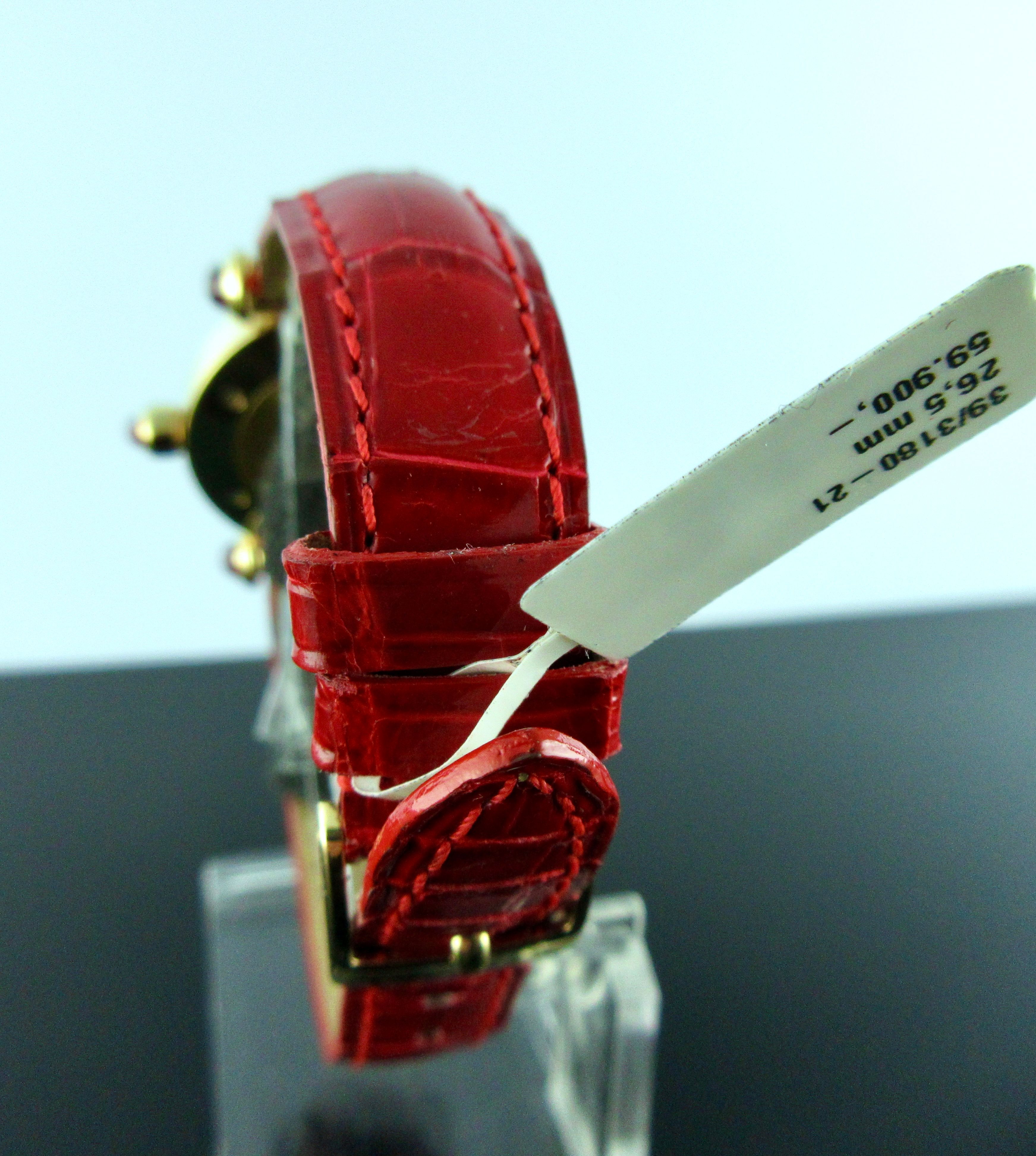 Minimale Dekospuren an der Unterseite des Lederbandes.