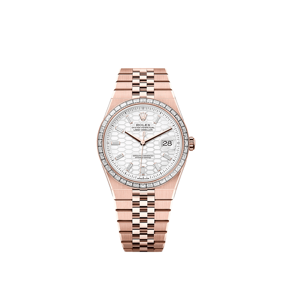 Rolex 127385TBR-0003 - Land-Dweller 40 Everose Baguette / Weiß / Flat Jubilee