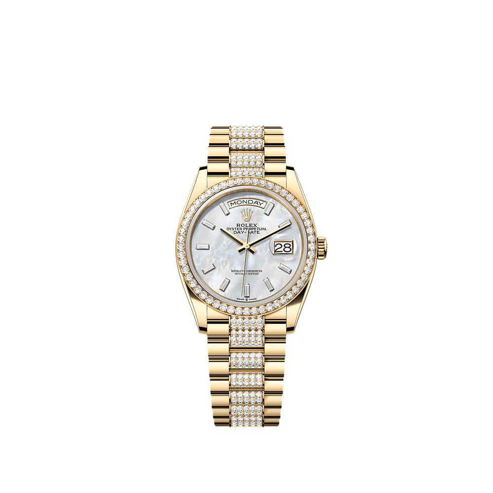 Rolex Day-Date 36 Rolex 128348RBR-0071 - Day-Date 36 Yellow Gold - Baguette / MOP - Diamond / President - Diamond