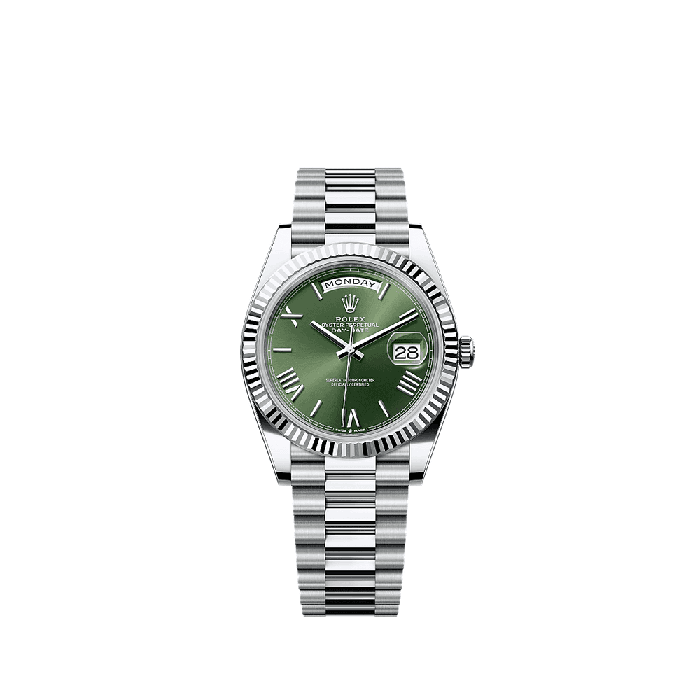 Rolex 228236-0008 Day-Date 40 Platin - geriffelt / grün - römisch