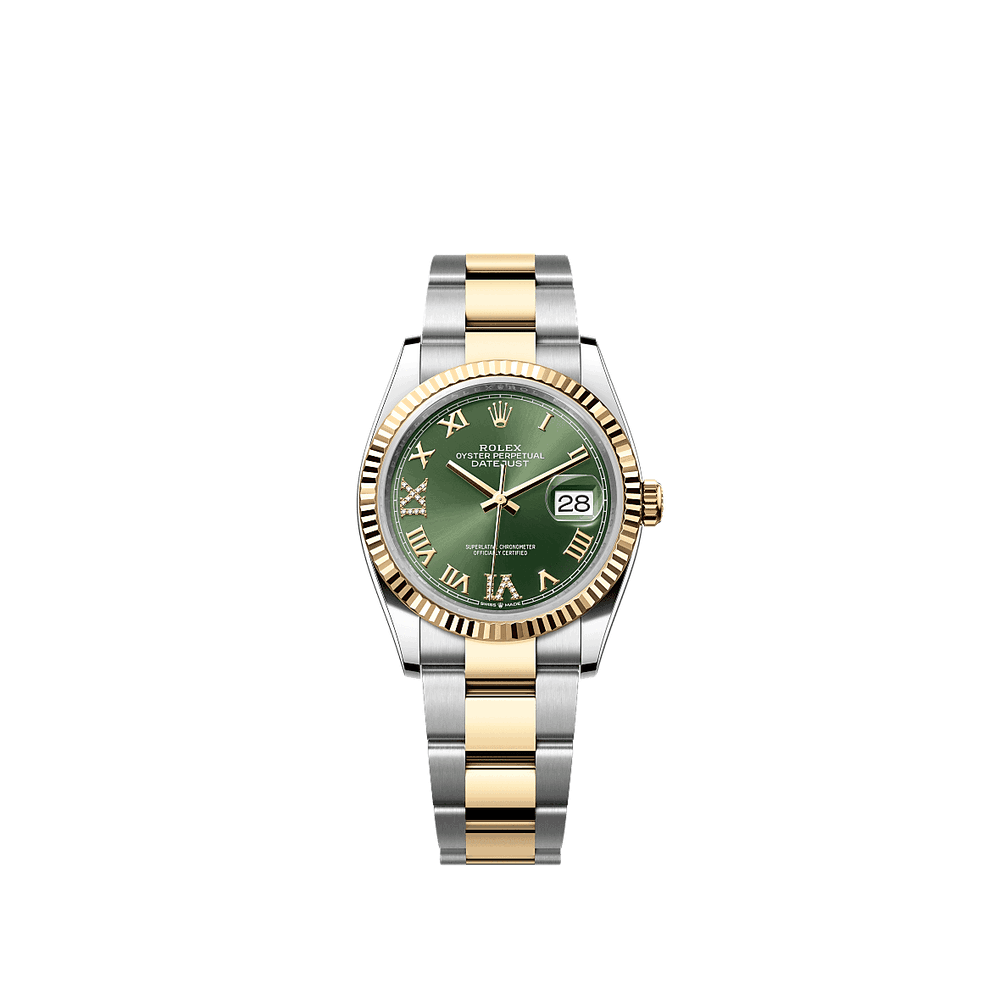 Rolex 126233-0026 Datejust 36 Stainless Steel / Yellow Gold / Fluted / Olive Green Roman / Oyster