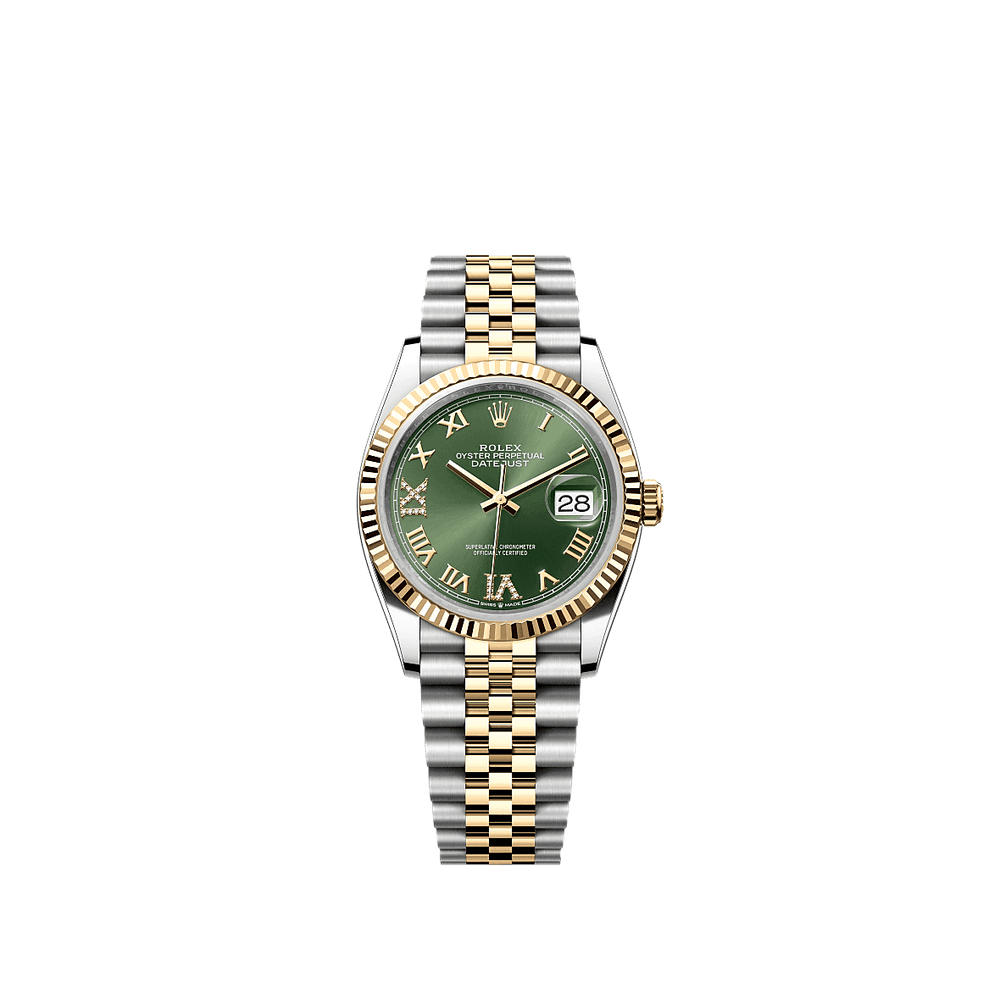 Rolex 126233-0025 Datejust 36 Stainless Steel / Yellow Gold / Fluted / Olive Green Roman / Jubilee