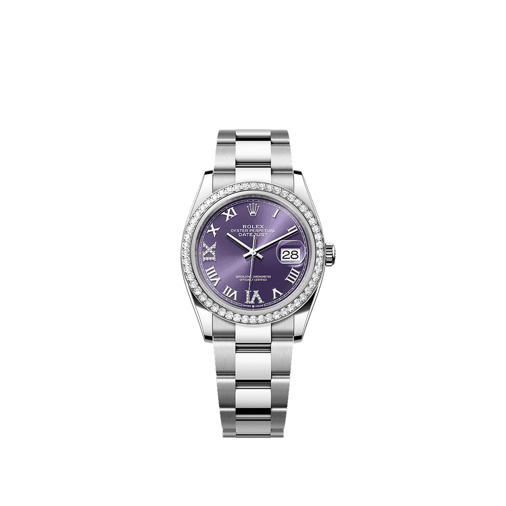 Rolex 126284RBR-0014 Datejust 36 Stainless Steel / Diamond / Aubergine Roman-Diamonds / Oyster