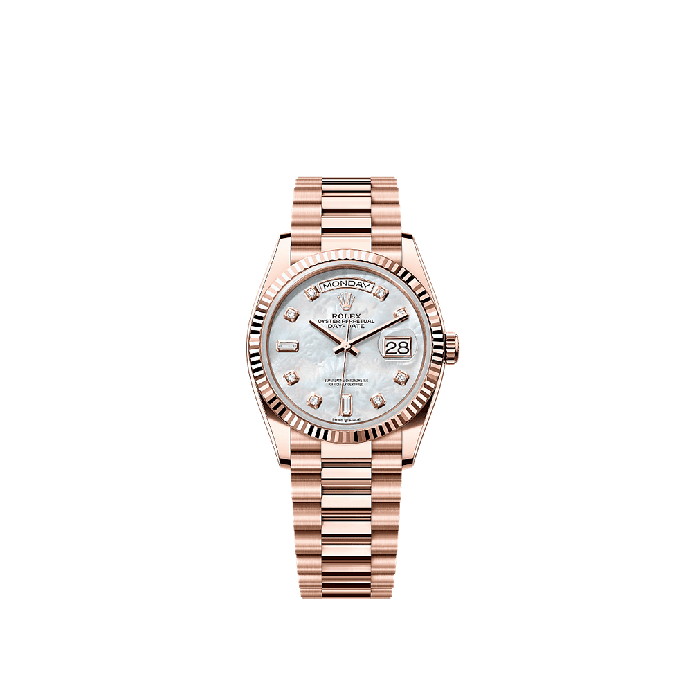 Rolex 128235-0029 Day-Date 36 Everose Gold / geriffelt / MOP-Diamant / Präsident