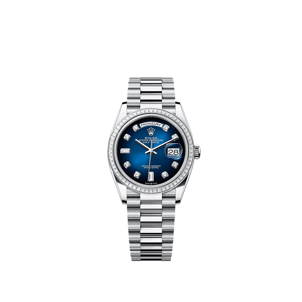 Rolex 128396TBR-0008 Day-Date 36 Platinum - Diamond / Blue Ombre / President