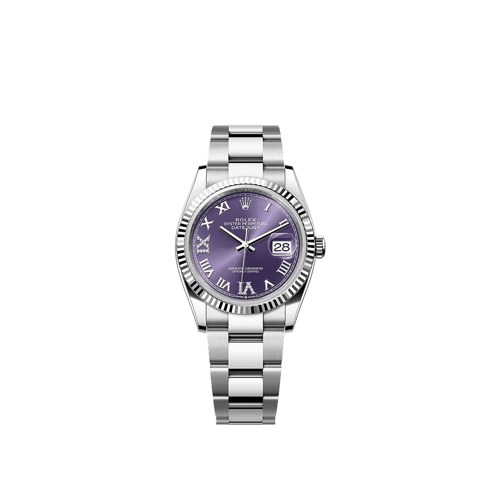 Rolex 126234-0022 Datejust 36 Stainless Steel / Fluted / Aubergine Roman-Diamonds / Oyster