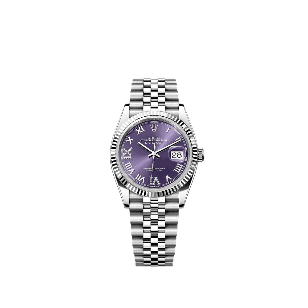 Rolex 126234-0021 Datejust 36 Stainless Steel / Fluted / Aubergine Roman-Diamonds / Jubilee