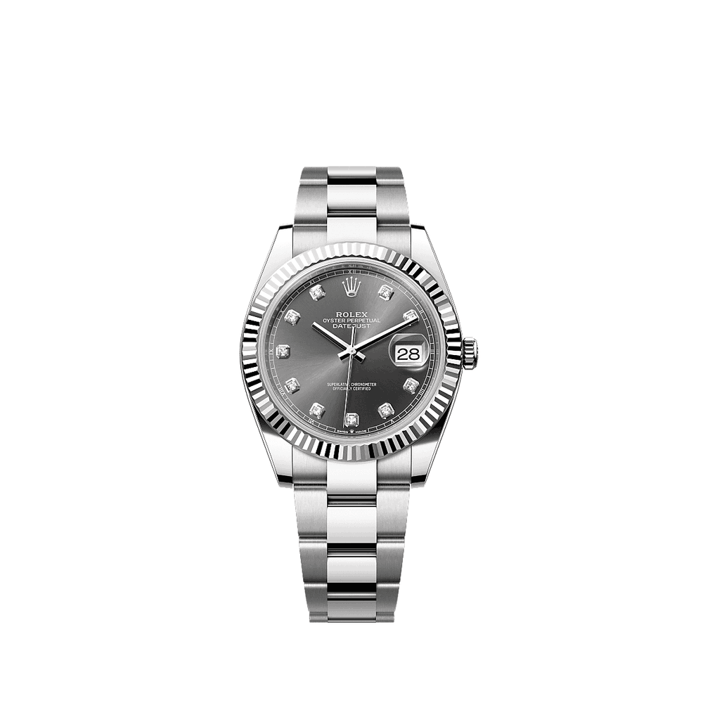 Rolex 126334-0005 Datejust 41 Edelstahl geriffelt / Oyster / Dunkel Rhodium - Diamant