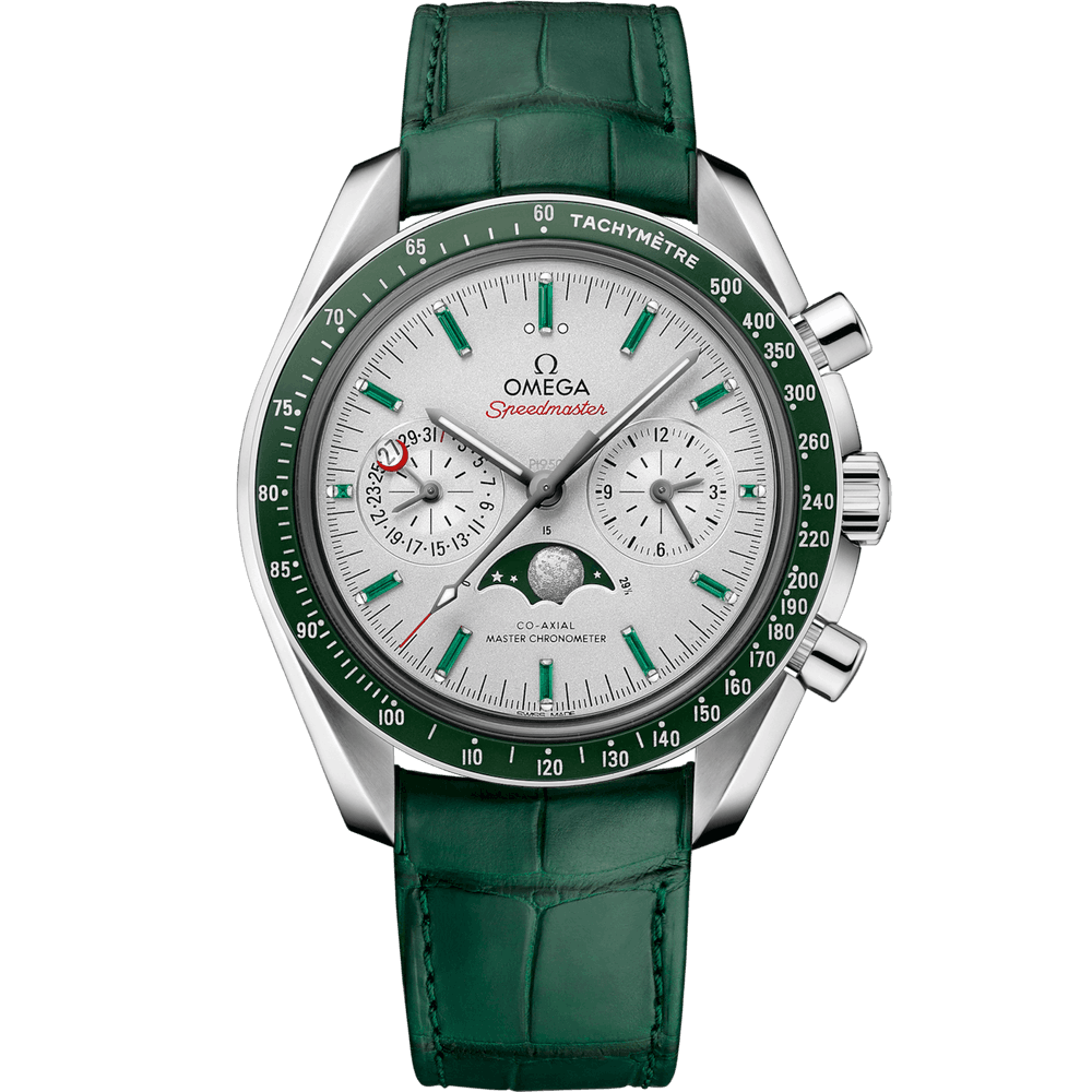 Omega Speedmaster Moonphase Omega 304.93.44.52.99.003 Speedmaster Moonphase Chronograph Master Chronometer Platinum / Silver / Emerald