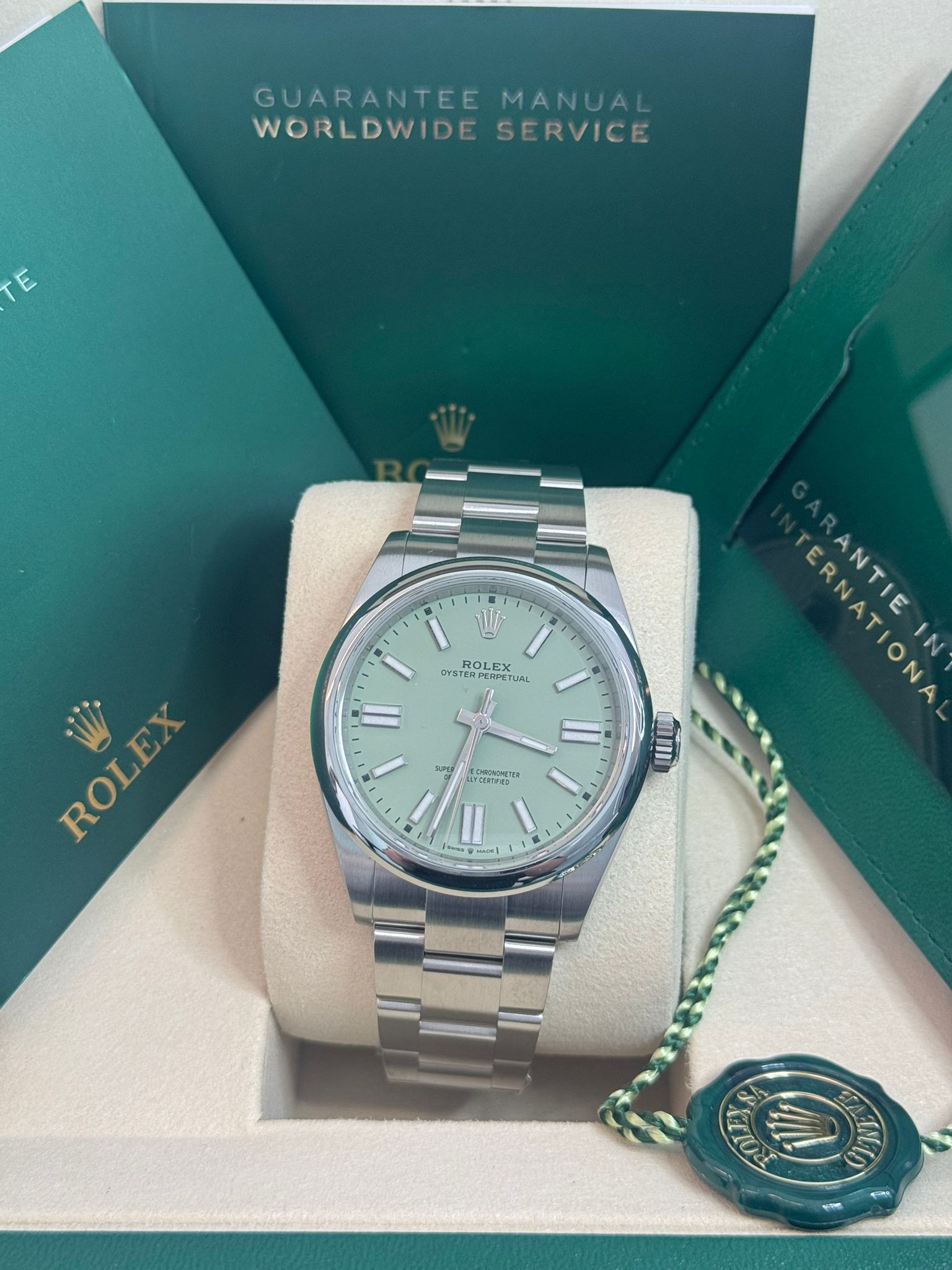 Rolex Oyster Perpuatal 41mm 134300 Pistachio Dial NEW 5/2025 unworn