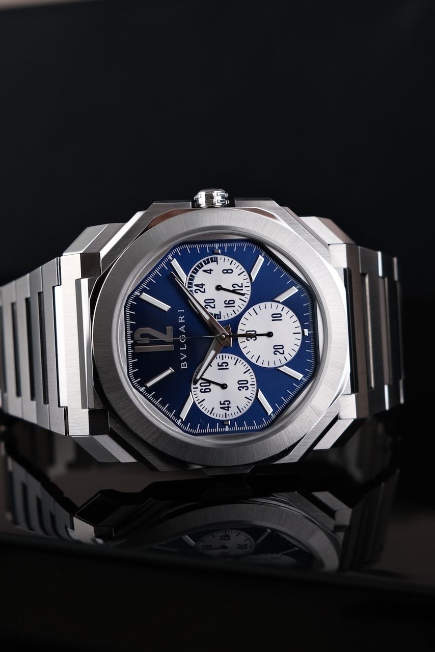 **Watch Description**Ready for your new dream watch? Perhaps this beautiful Bulgari Octo Finissimo Chronograph GMT made of Steel will soon be on your wrist. Whether vintage or modern - with over 200 watches in stock, we always have your new luxury watch available for you immediately - whether you are a first-time buyer or your watch collection needs a new addition.