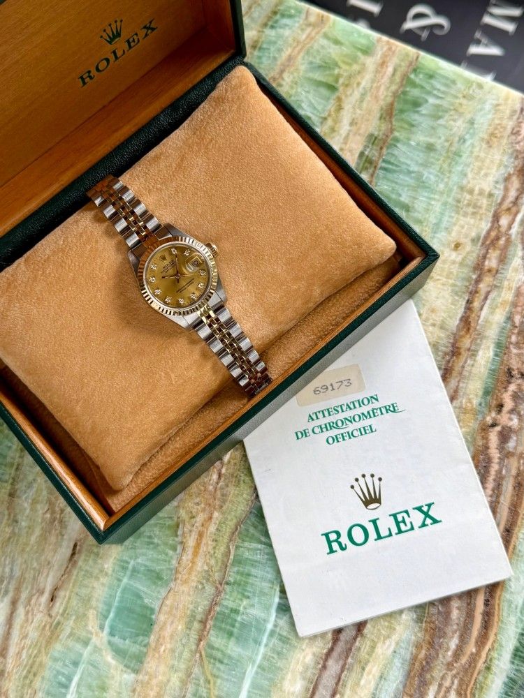 Rolex Lady-Datejust 'Diamond' 69173 Gold 1990 with original box and papers 2