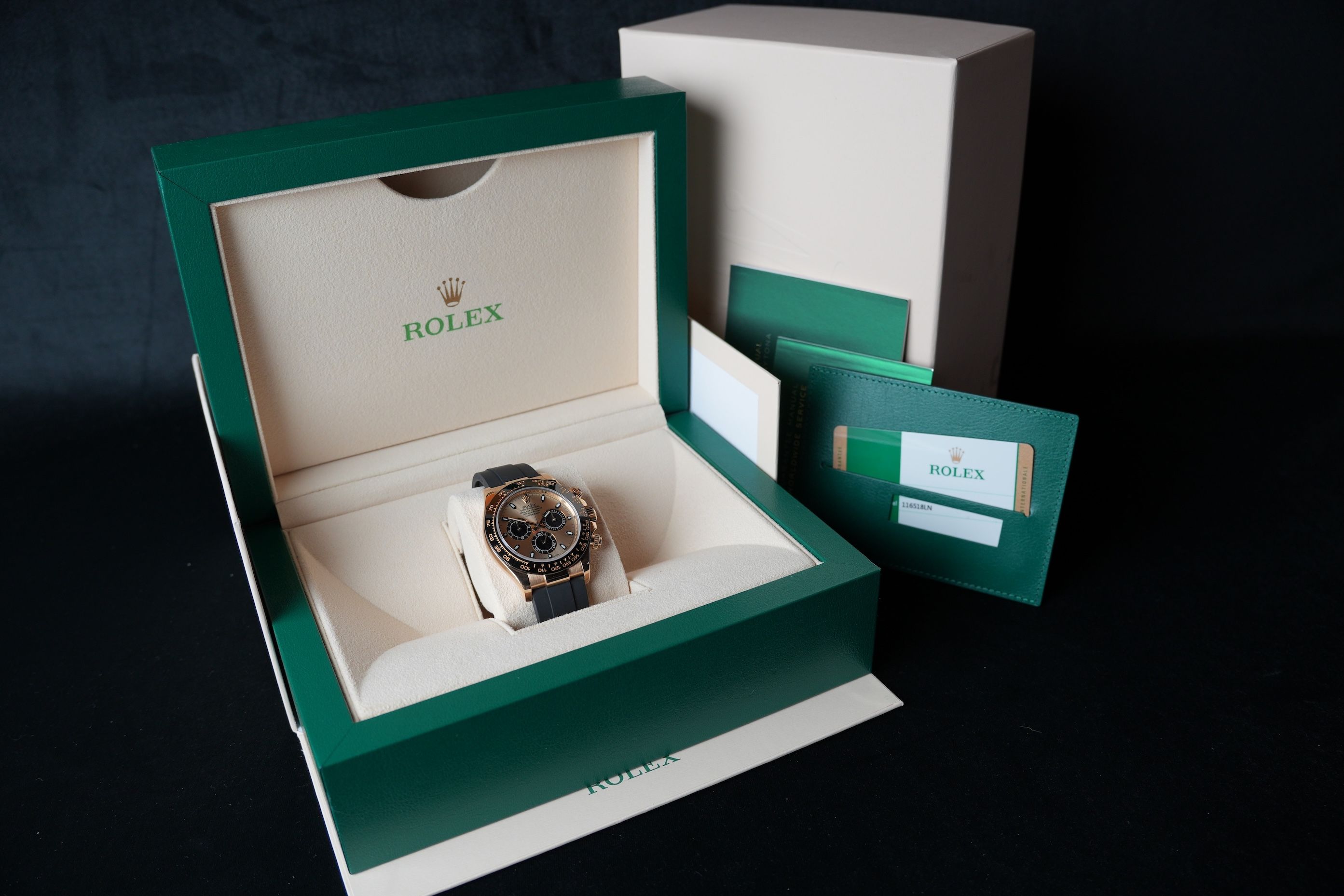 Dial colour is champagne.Originally sold by Rolex 07/2017, LC100 (Germany).