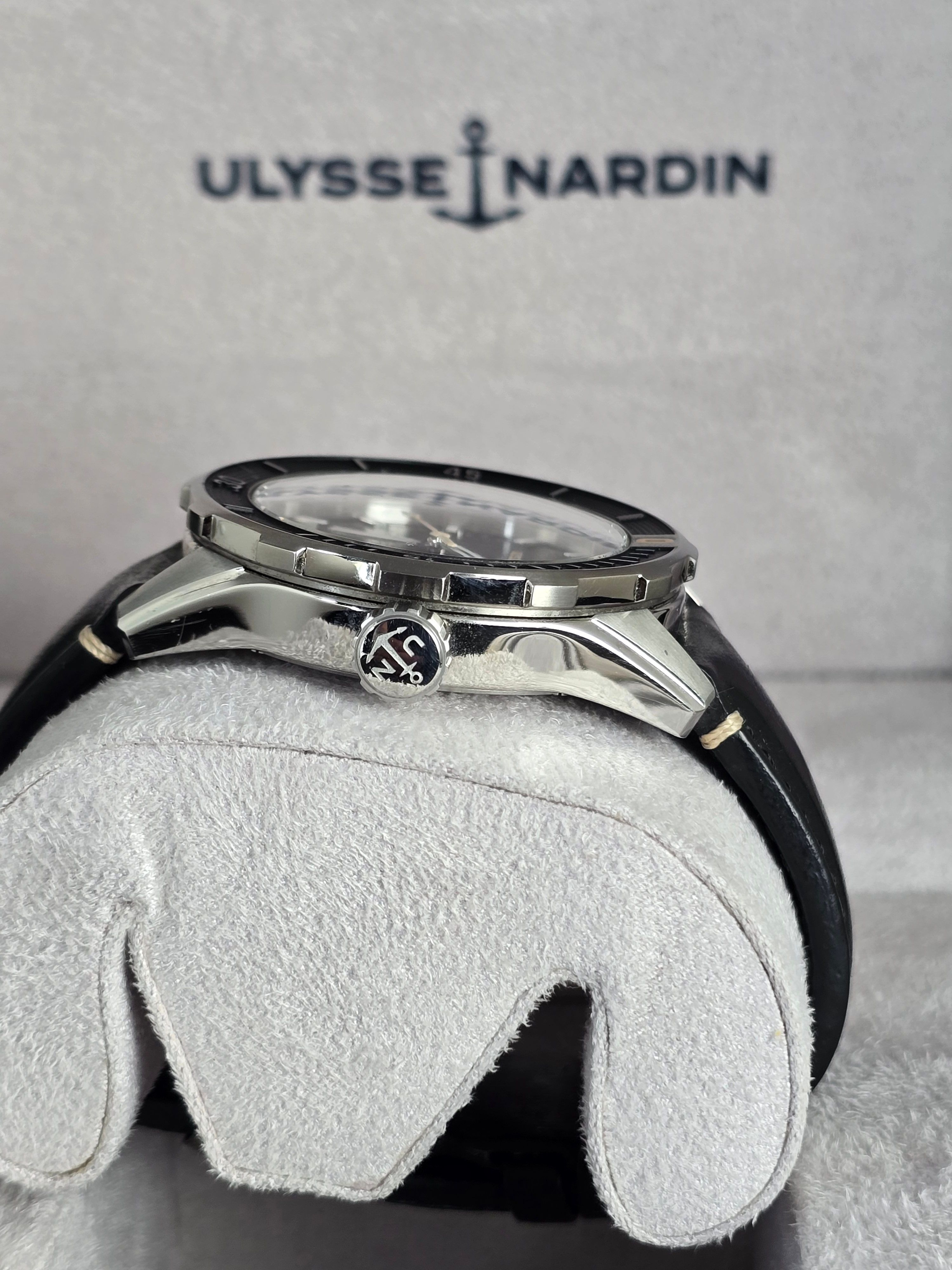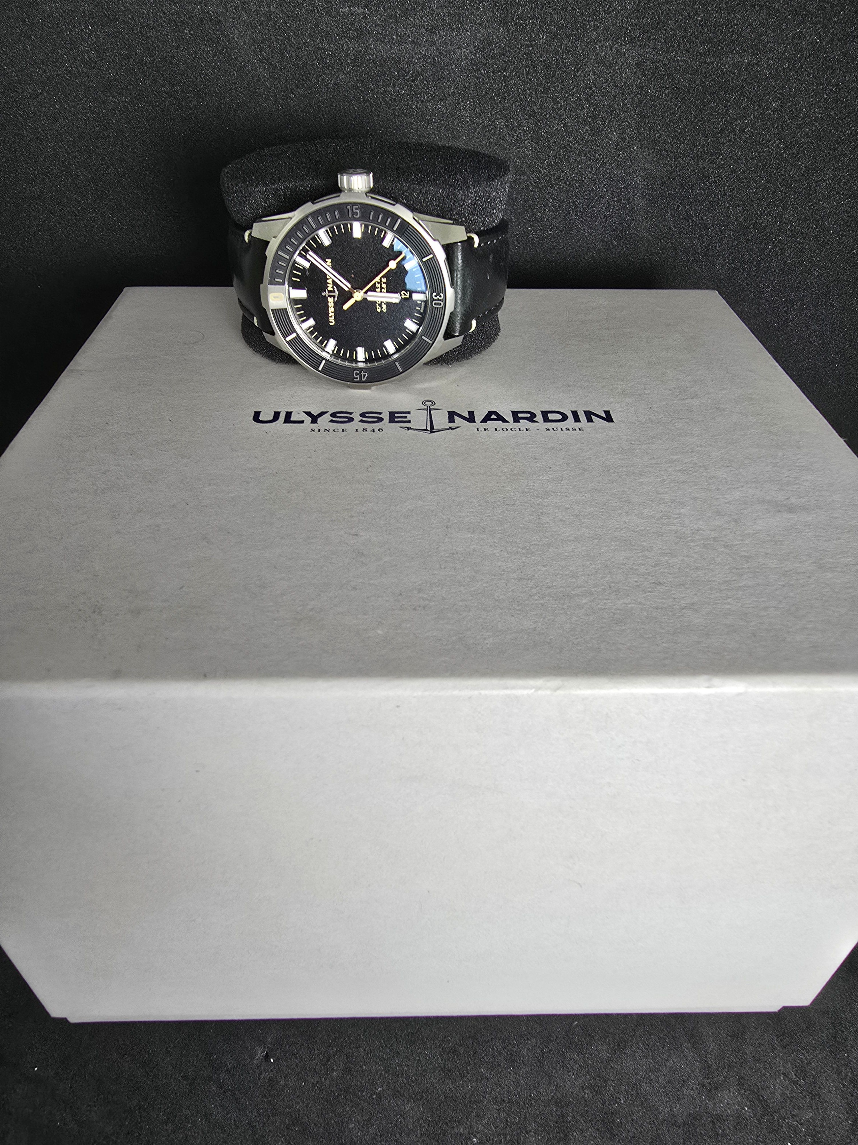 Ulysse Nardin Diver 42mm – Ref. 8163-175/92, Automatic, Full SetThe Ulysse Nardin Diver 42 (Ref. 8163-175/92) is a sleek, modern dive watch that blends the brand’s nautical heritage with refined, everyday wearability. This 42mm stainless steel model features a deep blue dial with bold luminous markers and a matching unidirectional blue bezel, offering both legibility and style under all conditions.
