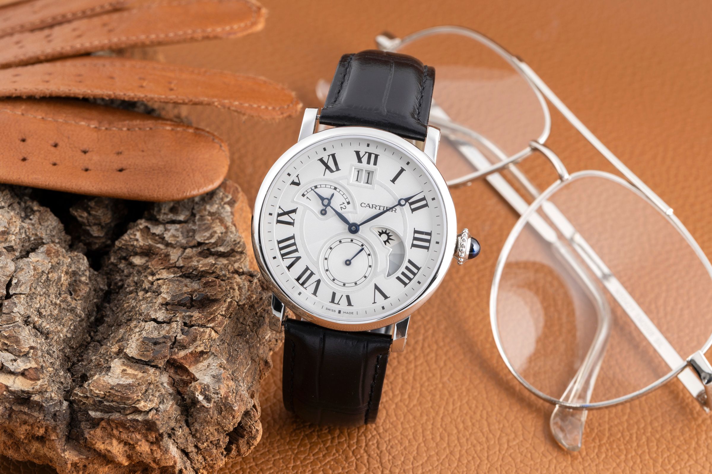 Alternative title: Cartier W1556368 Rotonde de Cartier Second Time Zone Day / Night Stainless Steel / Silver; Cartier Rotonde de Cartier Grossdatum Retrograde 2.Zeitzone Ref. W1556368 [2500990]