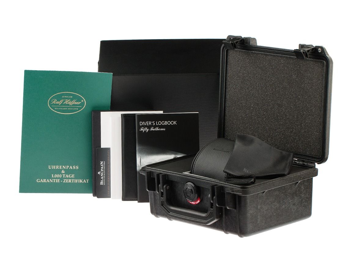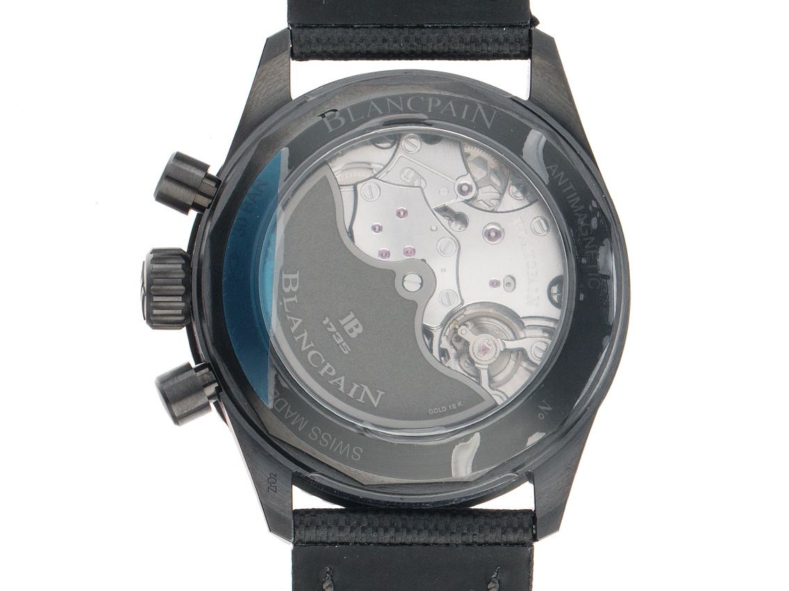 Gehäuse Keramik satiniert, Gehäusedurchmesser ohne Krone 43,6mm, Gehäusehöhe 15,2mm. Lünette Keramik gerädelt und satiniert mit schwarzer Keramikeinlage, 60 Minuten Skala mit einem Leuchtpunkt, einseitig drehbar. Armband Segeltuch / Kautschuk schwarz mit Ziernaht, Anstoßbreite 23mm, Stiftschließe Keramik mit Hersteller-Logo. Zifferblatt schwarz mit aufgesetzten Leuchtindexen und Leuchtpunkten sowie Leuchtzeigern. Uhrwerk Automatik, Chronograph, Blancpain Manufakturkaliber 385 mit 37 Edelsteinen. Gangreserve ca. 50 Stunden. Anzeige von Stunde und Minute über Zeiger aus der Mitte, kleine Sekunde mit Sekundenstopp zur sekundengenauen Einstellung der Uhrzeit bei 6 Uhr, Datumsanzeige mit Schnellverstellung zwischen 4 und 5 Uhr. Saphirglas kratzfest und bombiert. Krone verschraubbar mit Hersteller-Logo. Boden Keramik verschraubt und graviert mit Saphirglas Sichtfenster. Gewicht der Uhr inklusive Armband 104g, Wasserdicht bis 30 ATM. Referenznummer: 5200-0130-B52A, ID: ST1160272300625H-19750, Artikelnummer: 10000080713. Original Blancpain Box mit Umkarton und Garantie Papiere von Mai 2025 sowie Beschreibung, Ledermäppchen und Poliertuch, Full Set. Superschnäppchen, Kapitalanlage mit Wertsteigerungspotential, extrem seltenes Sammlerstück. Ungetragen. Lieferzeit sofort.