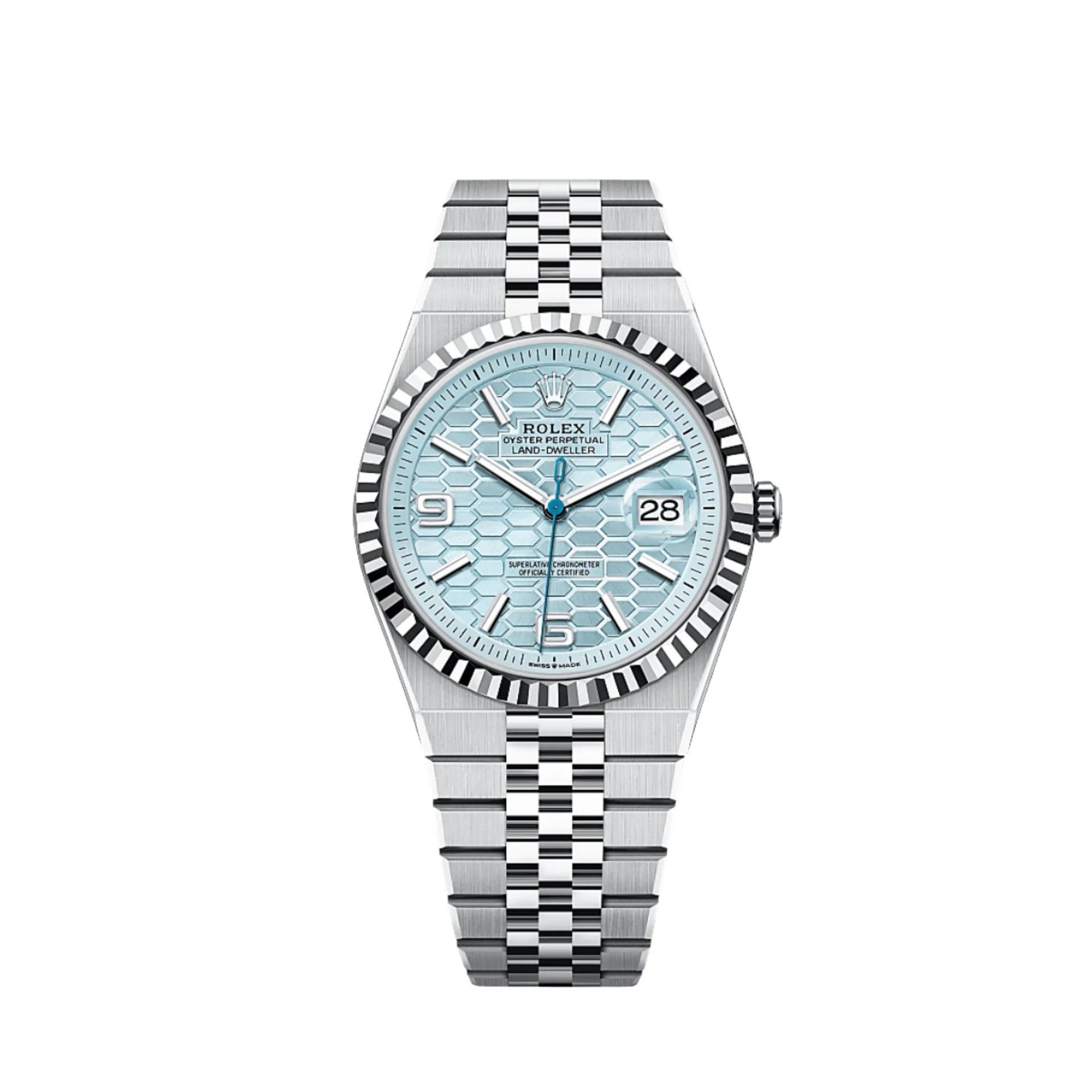 Rolex 127336-0001 - Land-Dweller 40 Platinum / Ice Blue / Flat Jubilee