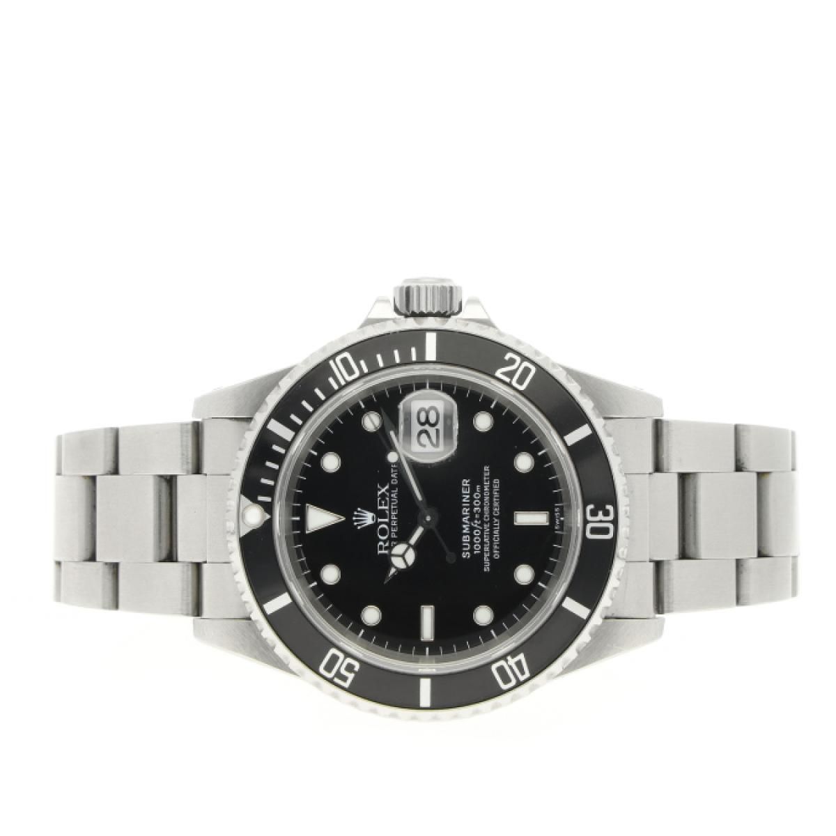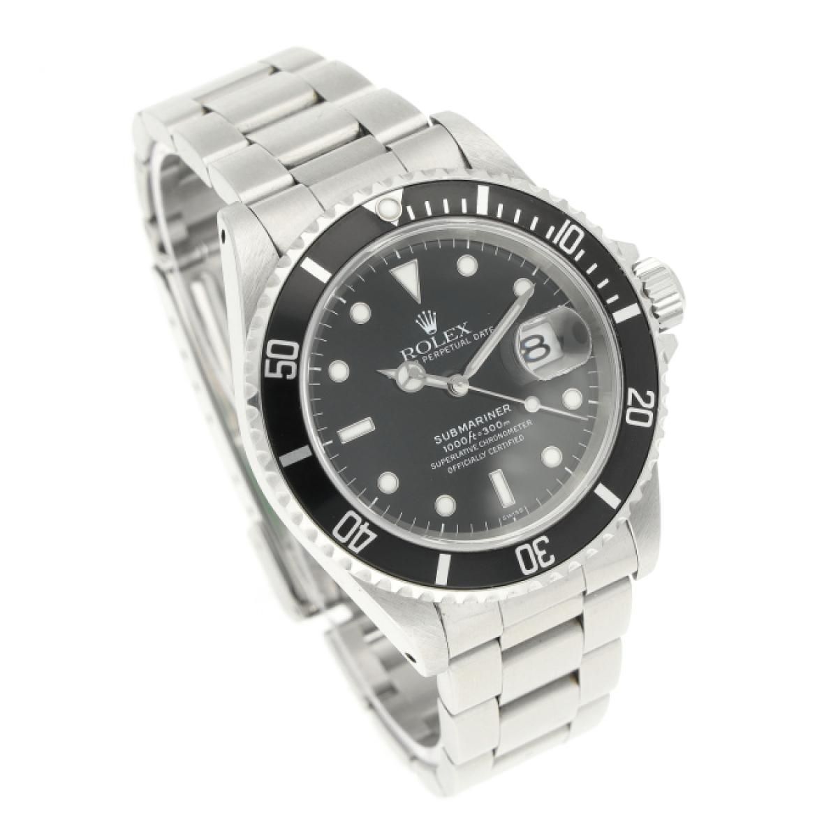 Rolex Submariner aus dem Jahr 1991 mit einem 40-mm-Edelstahlgehäuse und Faltschließe. Die Rolex Herrenuhr ist in sehr gutem Zustand.