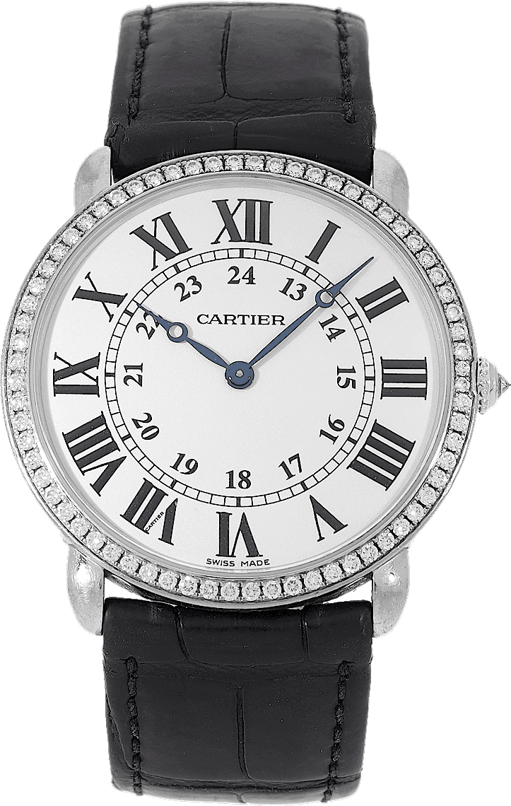 Cartier Ronde Louis, Reference: WR000551, Gender: Unisex, Size: 36mm, Dial color: White, Strap material: Alligator Leather, Movement: Manual Wind, Condition: Pre-owned watch in original condition. Has been inspected, regulated and authenticated by certified CHRONEXT watchmakers., Documents: Chronext Certificate