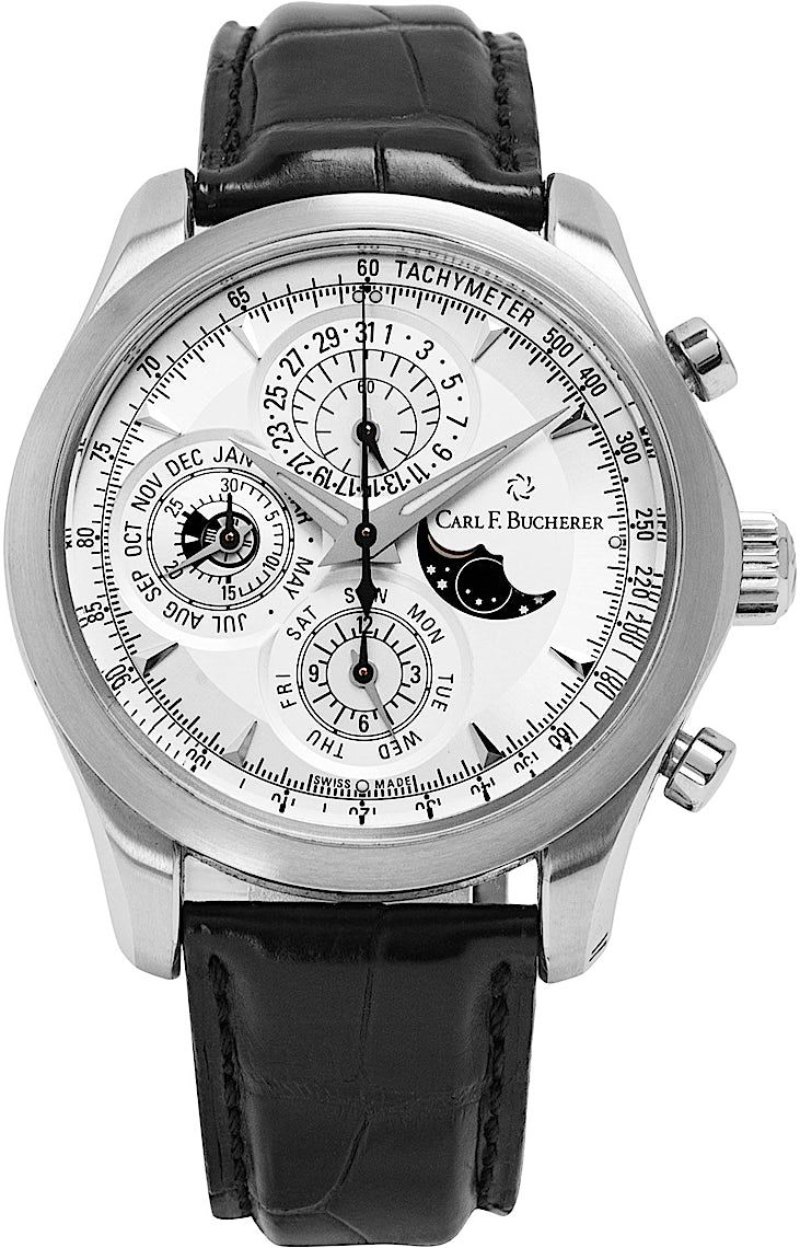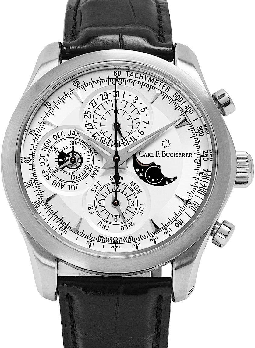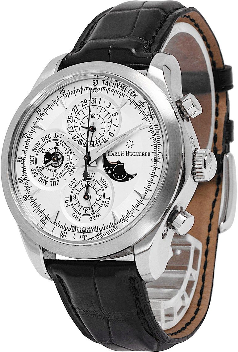 Carl F. Bucherer Manero Chronograph Perpetual, Reference: 00.10906.08.13.01, Gender: Male, Size: 42mm, Dial color: Silver, Strap material: Alligator Leather, Movement: Automatic, Year: 2015, Condition: Previously worn, minor to no signs of usage. The movement is flawless and the case has been cleaned. watch tested ensure full functionality. An inspection by our certified watchmakers guarantees its authenticity., Documents: Original papers, CHRONEXT Certificate