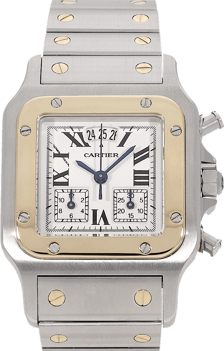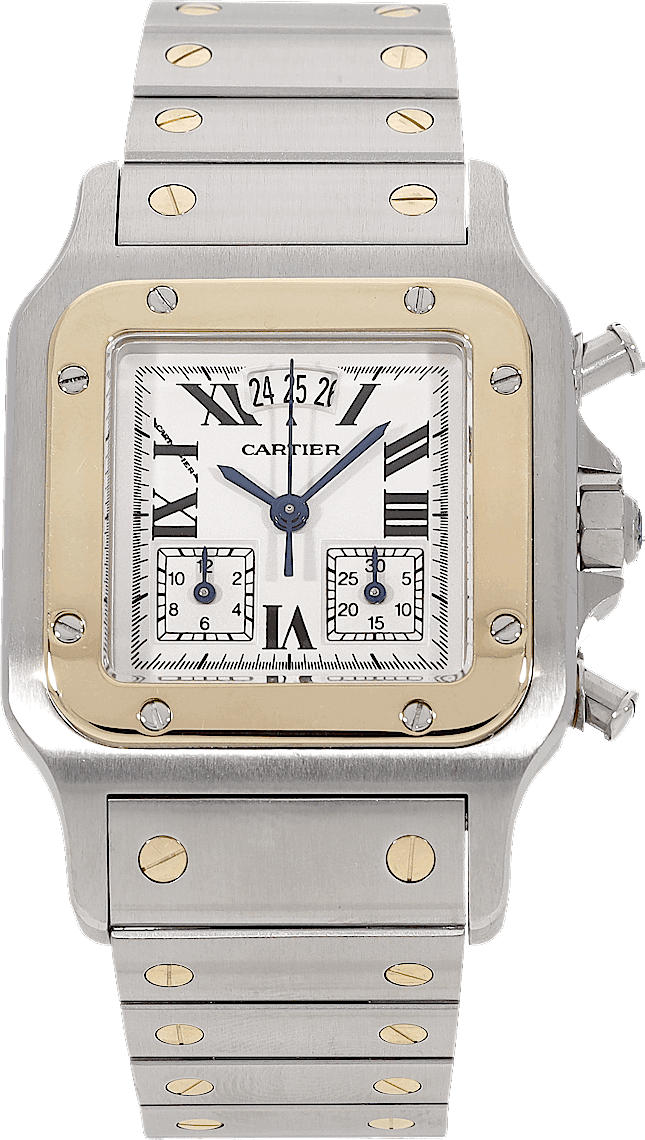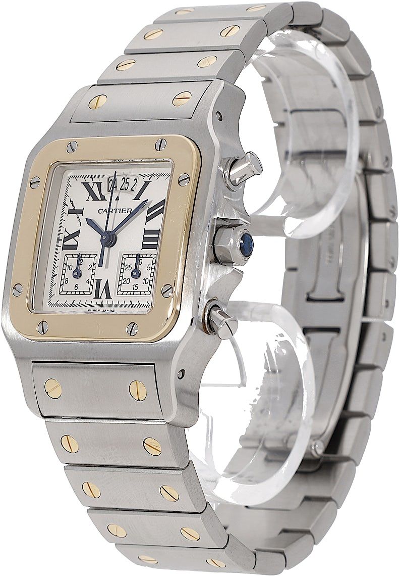 Cartier Santos Galbee, Reference: W20011C4, Gender: Female, Size: 29mm, Dial color: White, Strap material: Stainless Steel Yellow Gold, Movement: Quartz, Condition: Previously worn with some signs of usage. The movement is flawless and the case has been cleaned. watch tested to ensure full functionality. An inspection by our certified watchmakers guarantees its authenticity., Documents: Chronext Certificate
