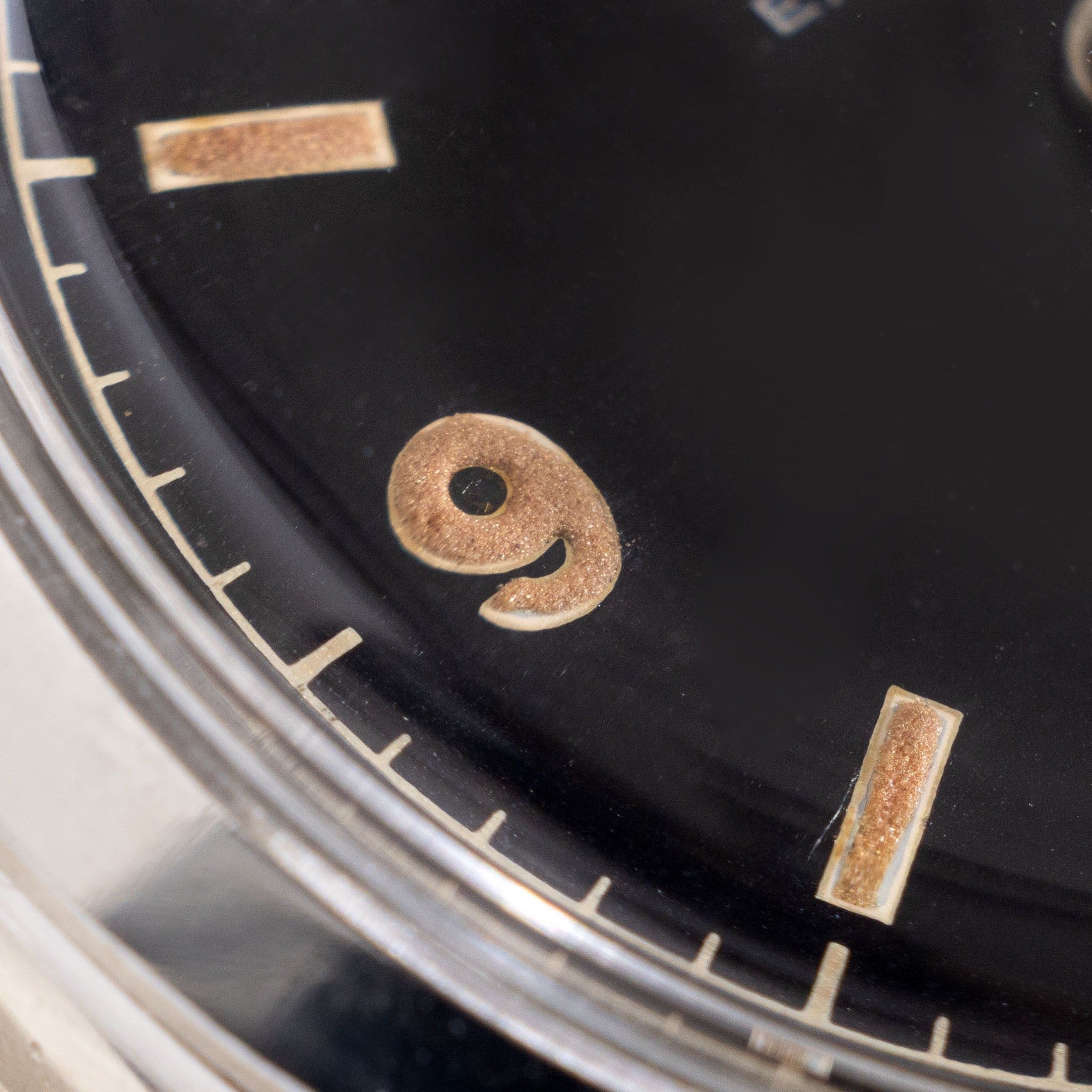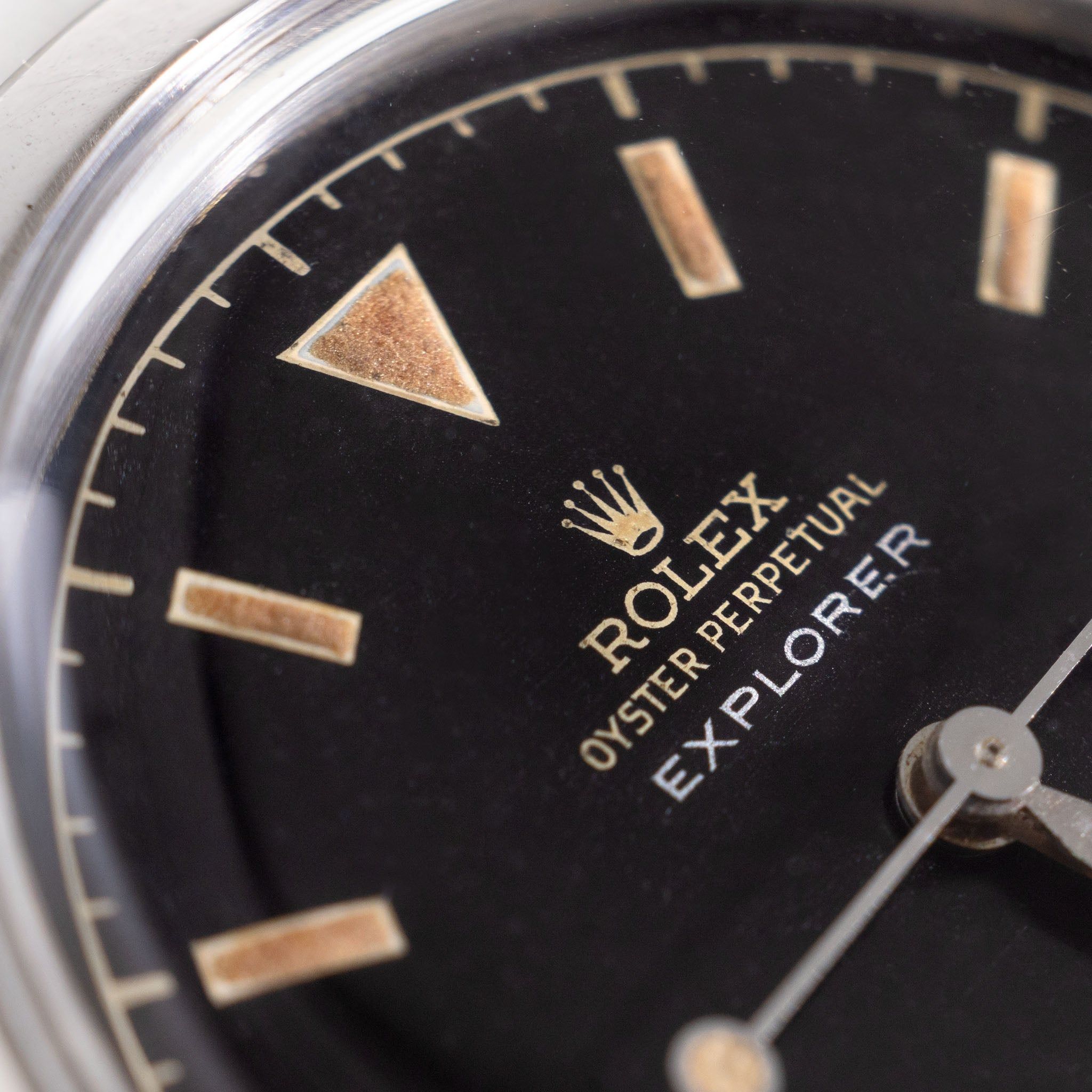 The Explorer has long represented what many consider the perfect “one good watch” to own. Its clean design and understated versatility make it equally suited to everyday life and adventurous escapes. The reference 1016, in particular, holds a special place in watch history—produced for an impressive 29 years, from 1960 to 1989. With its modest 36mm case, no-date dial, and sharp black face—whether gilt or matte—it remains the quintessential vintage Rolex sports watch. Quietly iconic, the Explorer is the Rolex for those who appreciate substance over status. For many watch enthusiasts, including us at Bulang and Sons, a gilt dial Explorer with a chapter ring is the ultimate grail—and when people picture that, they usually think of the Rolex 1016. While this is not a reference 1016, it is the ref. 5504—often overlooked and perhaps even “a forgotten Explorer reference.” Unlike its “brother” reference 5500, which is 34mm, the 5504 retains the full 36mm case size. Let’s break down why this watch is such an interesting one: The 5504 is often mistaken for a 1016, and truth be told, the only real difference is that the 5504 was never chronometer-certified. At the time, this was Rolex’s way of offering a nearly identical model at a lower price point. (Or—depending on how you look at it—charging more for the 1016! 😉) When the 5504 Explorer was first produced in 1958, the chronometer-certified Explorer was actually the Rolex 6610, which used the older caliber 1030 movement that Rolex was beginning to phase out of its sports models. The 5504 was one of the first to feature the newer caliber 1530, which was also used in early Submariners of the time, including the legendary 5508 and 5510 “Big Crown” models—better known as the “James Bond” watches. This newer caliber was compact and highly precise, but it was built as more of a workhorse movement. That’s why it appeared in several non-chronometer models, including early Submariners, the later 5513, and the Air-King. This fine example features a beautiful gilt dial with a chapter ring, bold lume-filled numerals, and silver printing for "Explorer" and "Super Precision." The hands were replaced during a later service and are tritium—no longer glowing under UV light. The riveted Oyster bracelet (ref. 7206) has end links marked 80 and a clasp stamped 2/69. The watch has been fully checked and regulated by our watchmaker and is ready to “explore some more” in the years ahead! It wears beautifully on the wrist—classic and under-the-radar, never loud. Get in touch if this low-key legend speaks to you. Specifications: Rolex Explorer Reference 5504 Super precision 36mm case with smooth bezel Serial 571xxx dating to 1960 Black gilt chapter ring dial “Swiss only “with two silver lines Hand set later then the watch Riveted Oyster bracelet ref 7206 with end links 80 Fully checked by our watchmaker One-year mechanical warranty Free worldwide FedEx Priority shipping