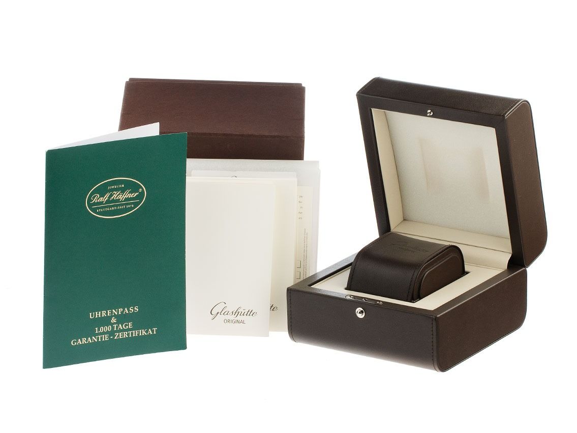 Inklusive Uhrenpass mit einem Farbbild, der genauen Beschreibung sowie dem Wiederbeschaffungswert der Uhr über 10200,-€ und 1000 Tage Garantie ab Kaufdatum.