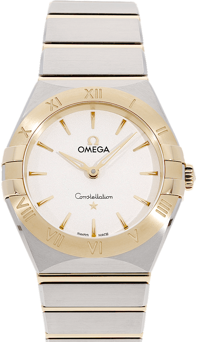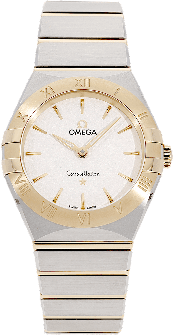 Omega Constellation Manhattan, Reference: 131.20.28.60.02.002, Gender: Female, Size: 28mm, Dial color: Silver, Strap material: Stainless Steel Yellow Gold, Movement: Quartz, Year: 2025, Condition: New and unworn. An inspection by our certified watchmakers guarantees authenticity., Documents: Original papers, CHRONEXT Certificate