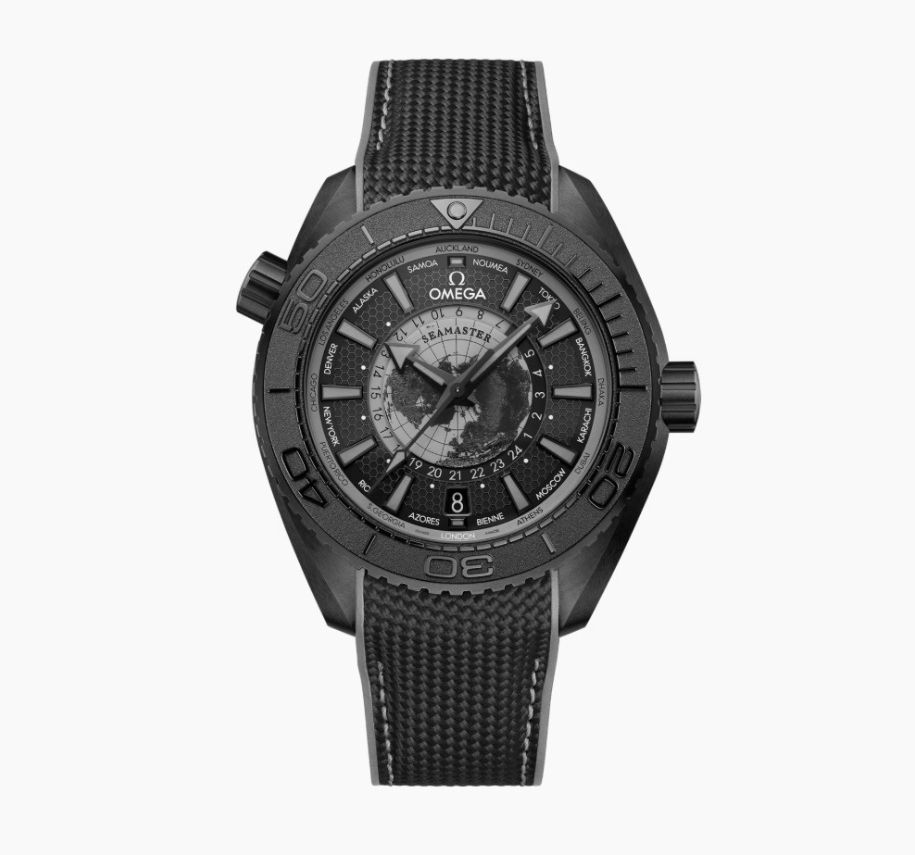 Omega 215.92.46.22.01.007 - Seamaster Planet Ocean 600M Co-Axial Worldtimer 45.5 Master Chronometer GMT Ceramic / Black - Grey / Rubber