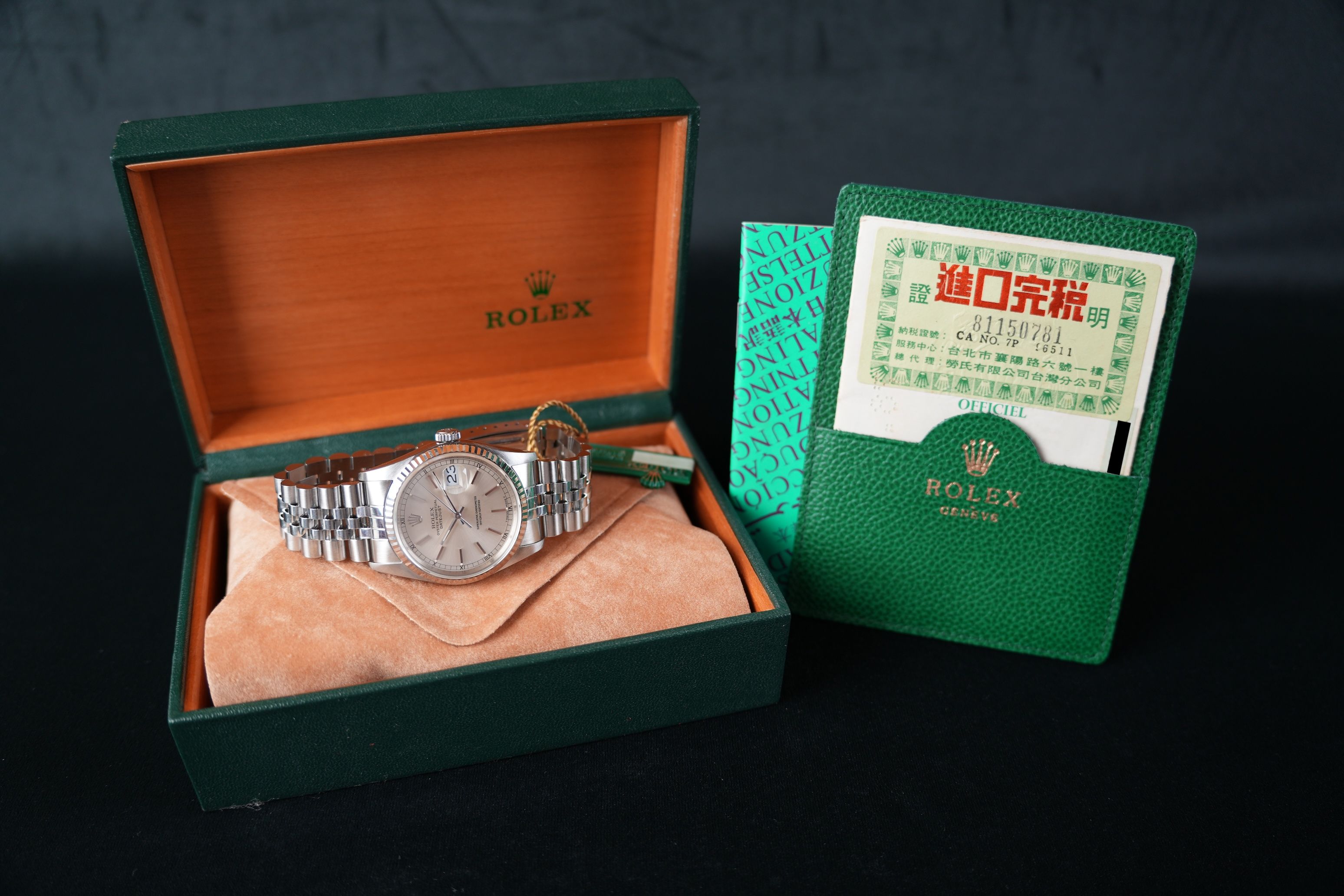 Dial colour is silver.Originally sold by Rolex 02/1987, LC440 (Taiwan).