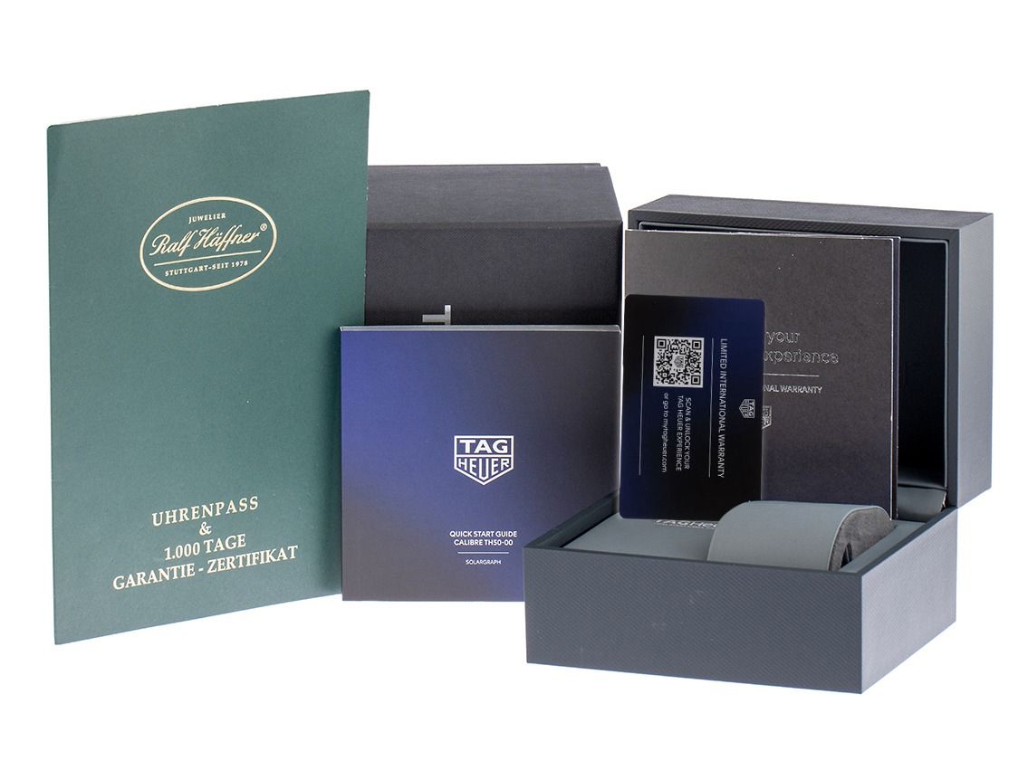 Gehäuse Edelstahl poliert und satiniert, Gehäusedurchmesser ohne Krone 34mm, Gehäusehöhe 9,7mm. Lünette Edelstahl poliert mit 60-Minuten Skala, einseitig drehbar. Armband Edelstahl poliert und satiniert, Sicherheitsfaltschließe Edelstahl mit Hersteller-Logo. Zifferblatt dunkelblau mit aufgesetzten Leuchtindexen und Leuchtzeigern. Uhrwerk quarzgesteuert, Kaliber TH50-01. Anzeige von Stunde, Minute und Sekunde über Zeiger aus der Mitte mit Sekundenstopp zur sekundengenauen Einstellung der Uhrzeit, Datumsanzeige mit Schnellverstellung bei 3 Uhr. Saphirglas kratzfest. Krone verschraubbar mit Flankenschutz und Hersteller-Logo. Boden Edelstahl graviert. Gewicht der Uhr inklusive Armband 90g, Länge des Armbandes inklusive Gehäuse 185mm. Wasserdicht bis 20 ATM. Referenznummer: WBP1311.BA0005, ID: ST116027641224H-2400, Artikelnummer: 10000077776. Original Tag Heuer Box und Garantie Papiere von Dezember 2024 sowie Beschreibung, Full Set. Ungetragen. Lieferzeit sofort.