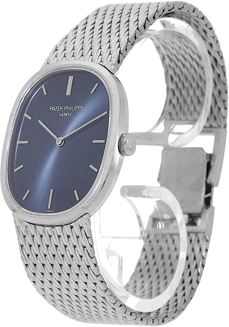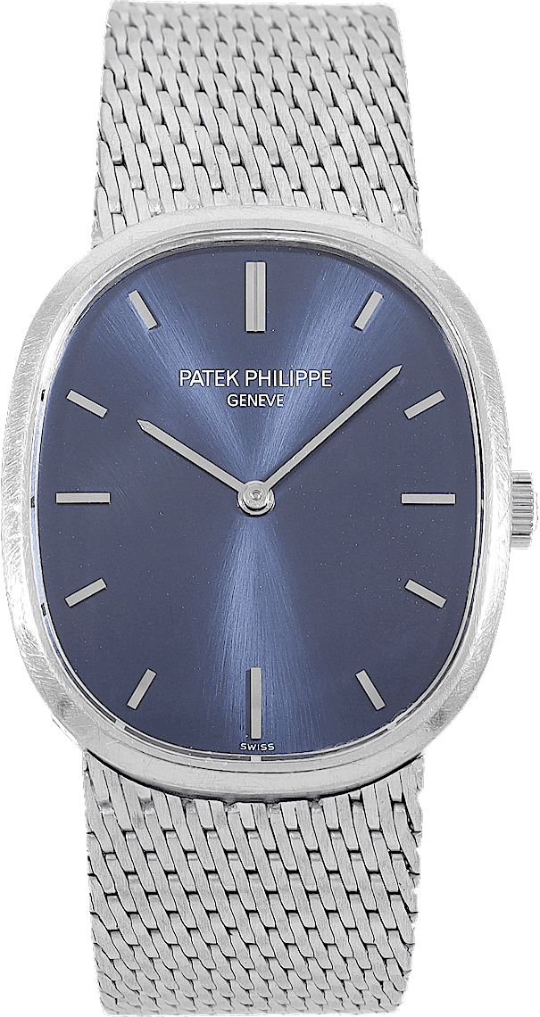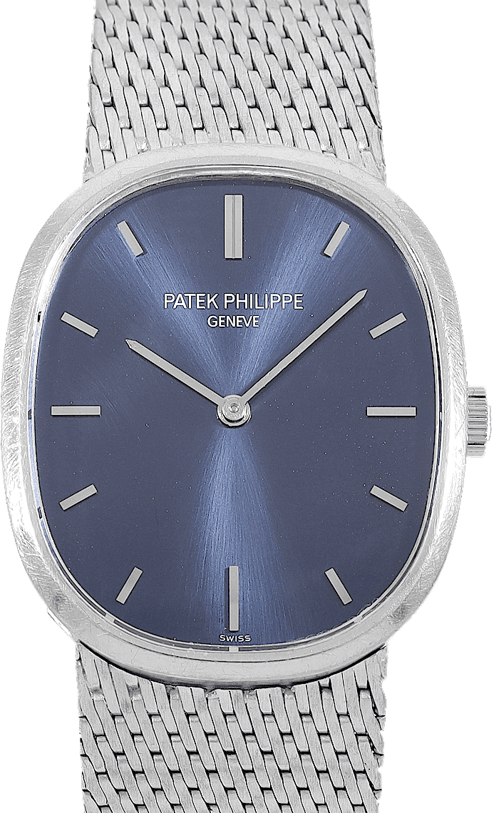 Patek Philippe Ellipse, Referenz: 3548/1G, Geschlecht: Weiblich, Größe: 32mm, Farbe des Zifferblatts: Blau, Material des Armbands: Weißgold, Uhrwerk: Handaufzug, Zustand: Eine gebrauchte Uhr im Originalzustand. Wurde von zertifizierten CHRONEXT-Uhrmachern überprüft, reguliert und beglaubigt., Dokumente: Chronext-Zertifikat