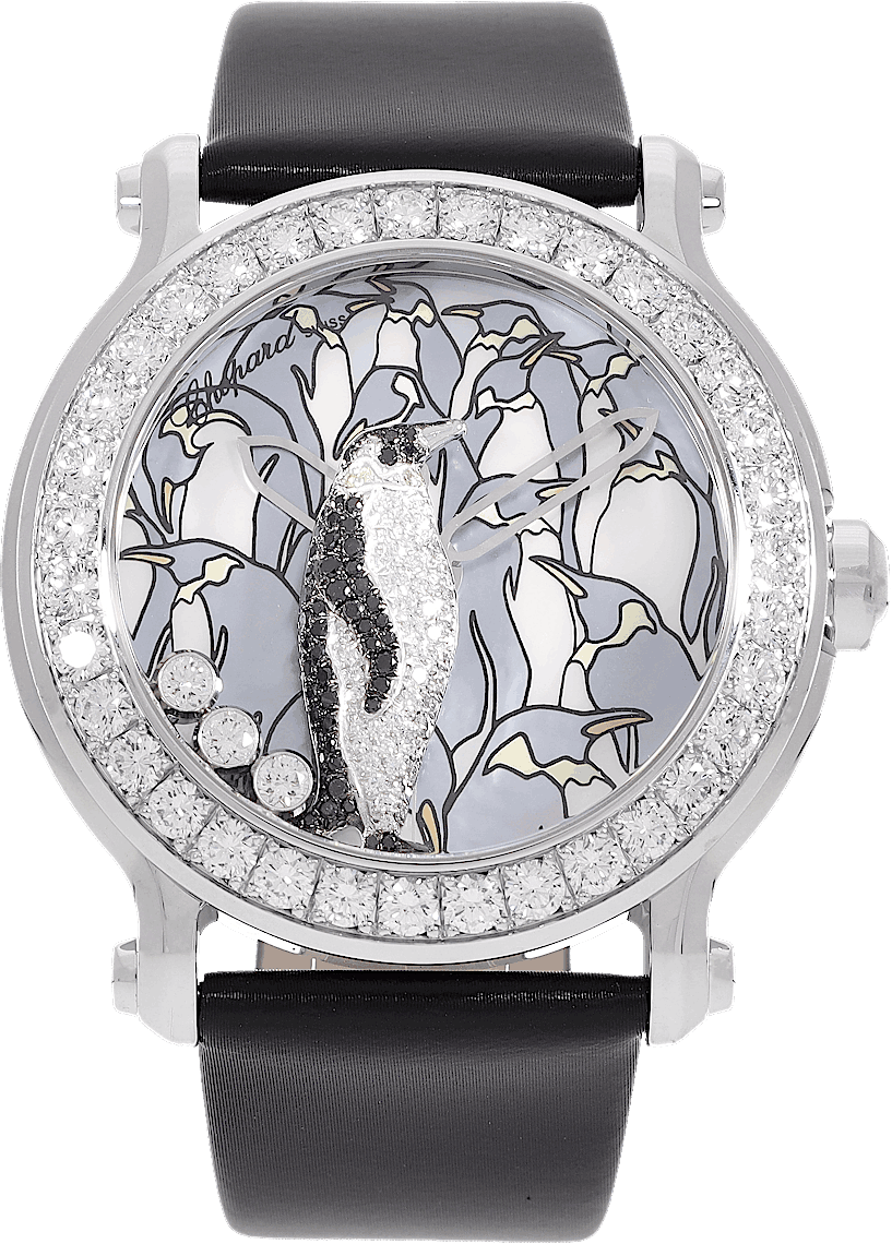 Chopard Animal World, Reference: 1269, Gender: Male, Size: 42mm, Dial color: Mother of Pearl, Strap material: Calf Leather, Movement: Quartz, Year: 2025, Condition: Previously worn with some signs usage. The movement is flawless and the case has been cleaned. watch tested to ensure full functionality. An inspection by our certified watchmakers guarantees its authenticity., Documents: Chronext Certificate