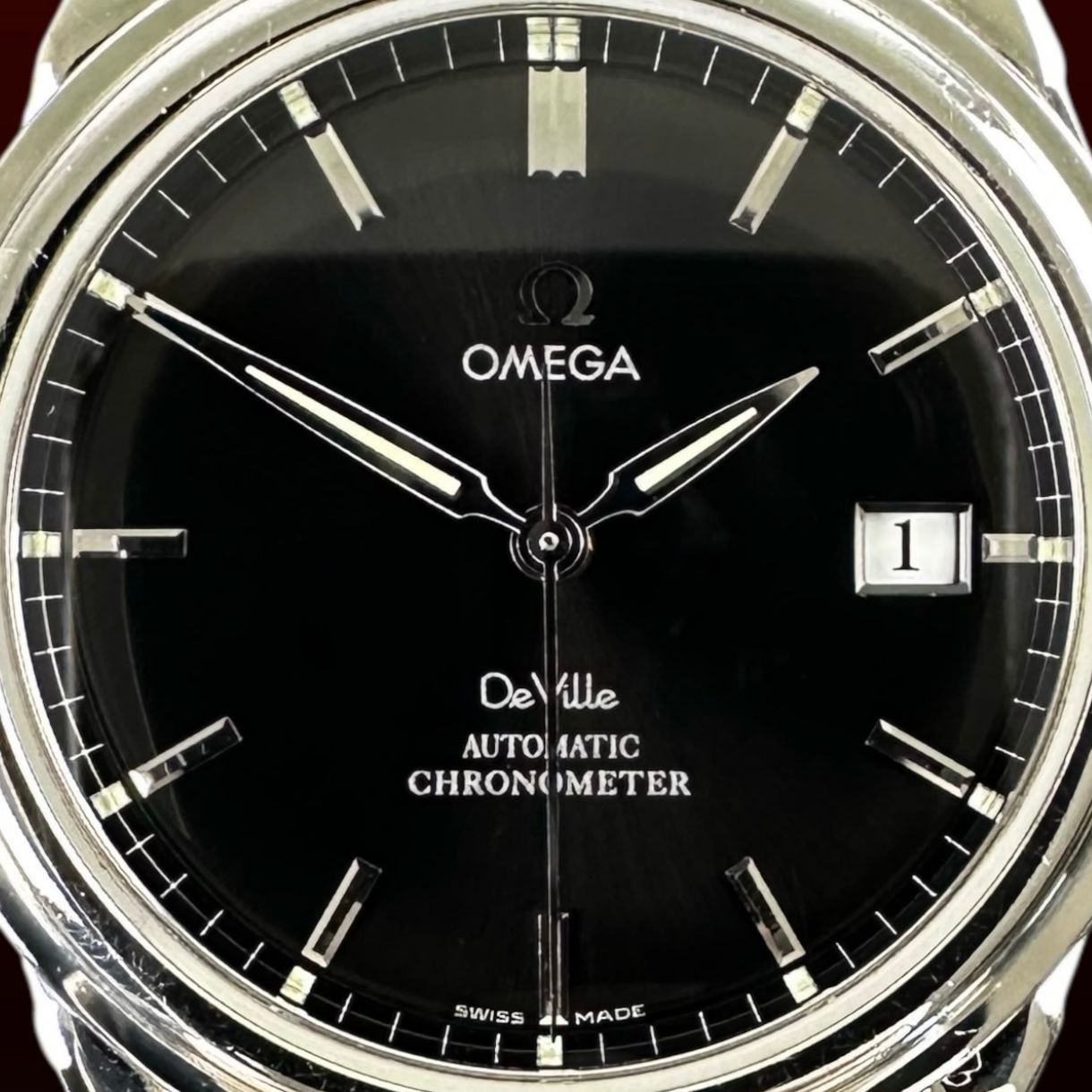 This vintage Omega De Ville Automatic Chronometer Co-Axial was produced in 2006 and remains in excellent condition. Although officially not yet vintage, we give it a 1 year head-start for the new owner to enjoy already. It features a 38mm case with a distinctive design in great shape, paired with a flawless black dial that retains its original untouched look.Inside is a freshly serviced automatic caliber 2500B Co-Axial movement, running and functioning perfectly following a full service completed in September 2025. The watch is fitted with a Grade 3 calf leather strap, finished with a black crocodile grain motif and a subtle glossy sheen.