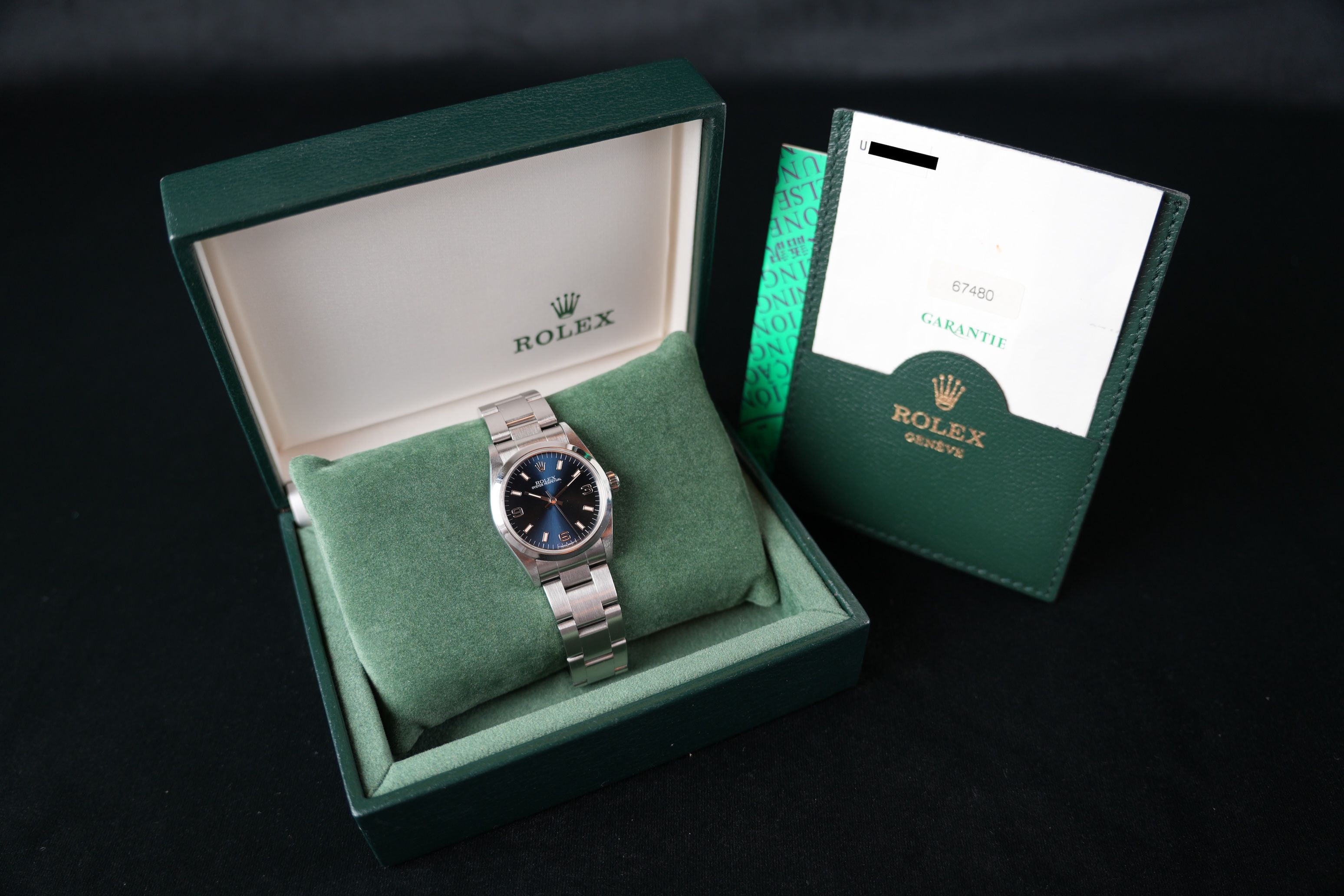 Dial colour is blue.Originally sold by Rolex 08/1998, LC400 (Hongkong).