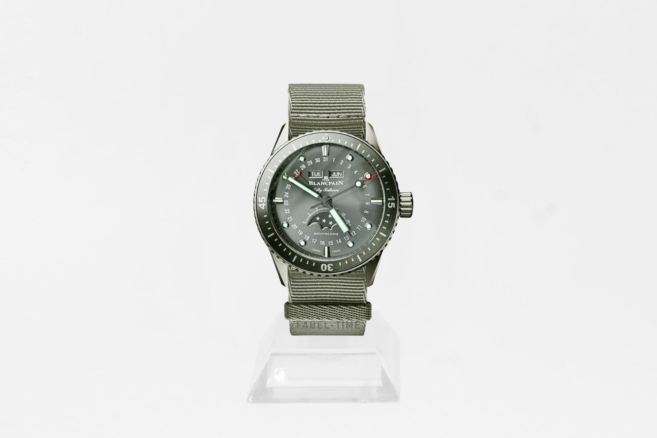 Blancpain Fifty Fathoms Bathyscaphe Blancpain Fifty Fathoms Bathyscaphe Quantième Complet Phases 5054 1210 NAGA Anthrazit Automatik 43 mm Titan, NATO Armband